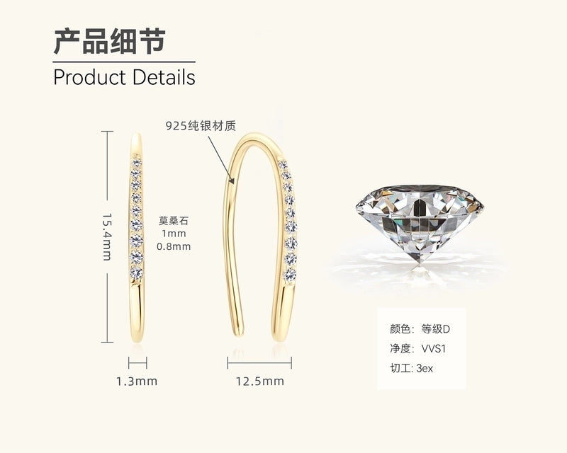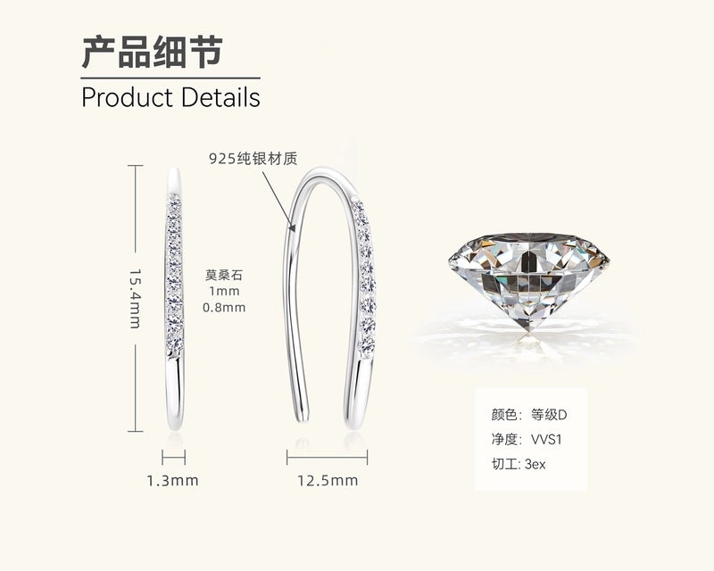 1 Pair 925 Sterling Silver Moissanite Solid Color Earrings