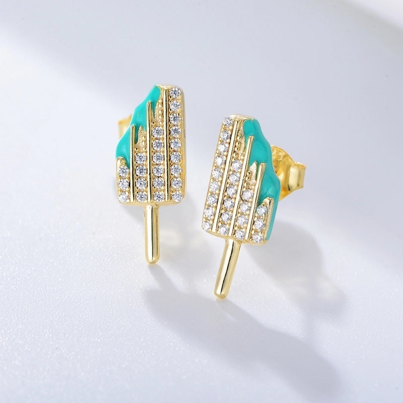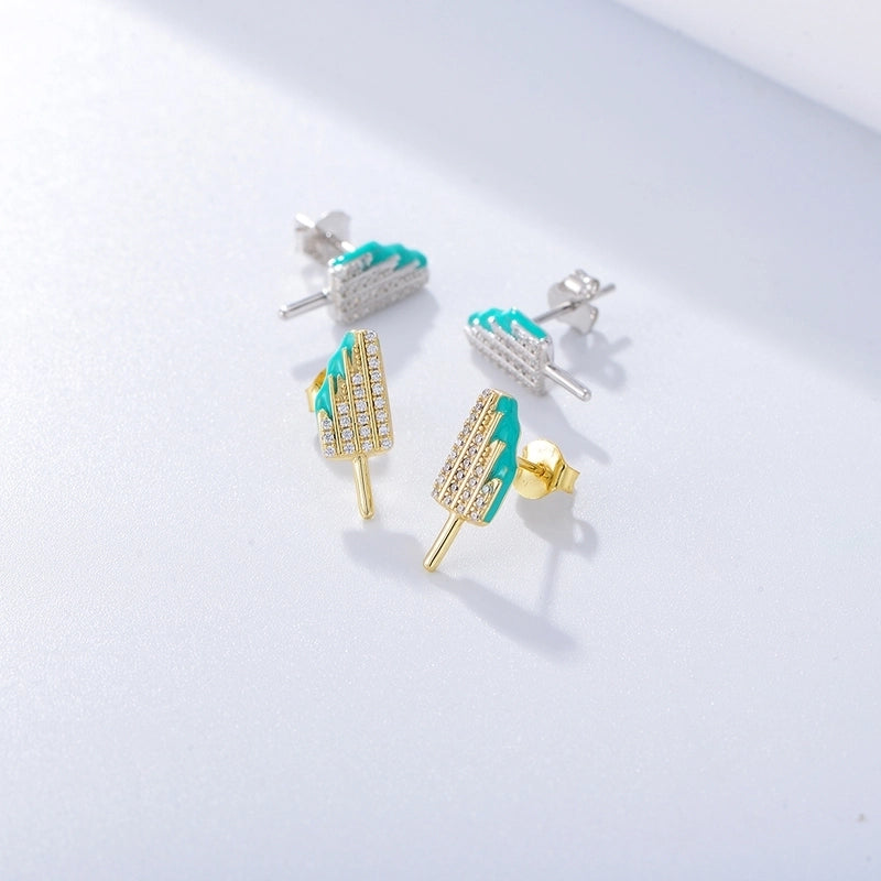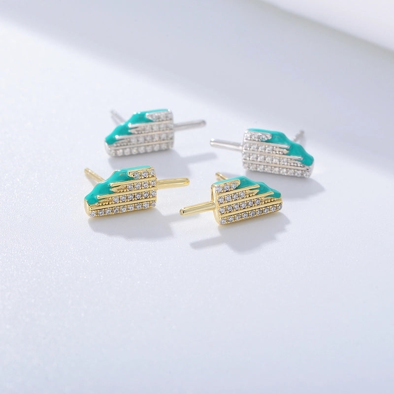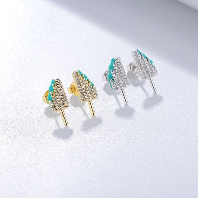1 Pair 925 Sterling Silver Zircon Ice Cream Ear Studs