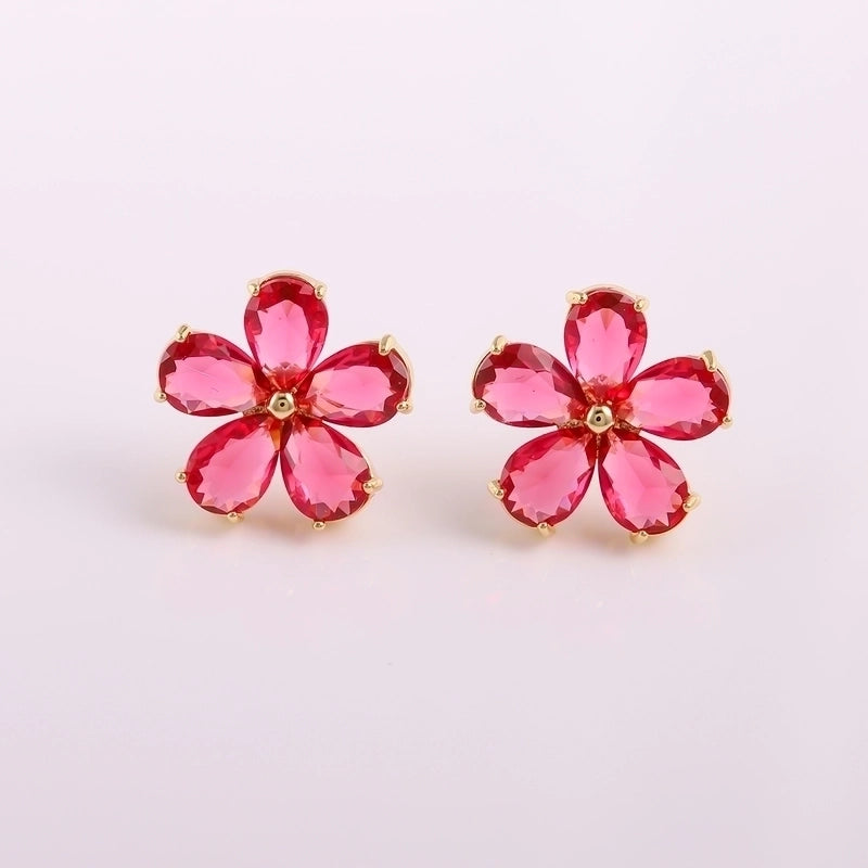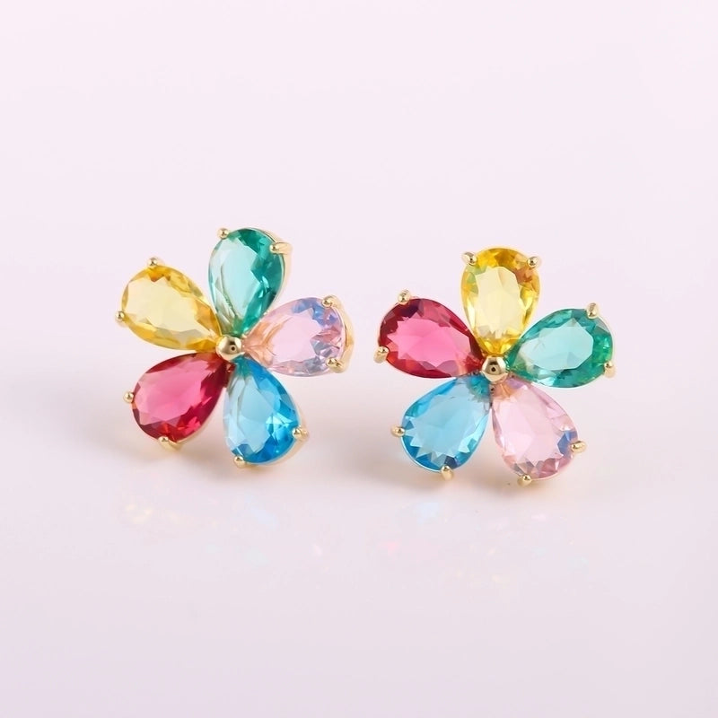 1 Pair Affordable Luxury Fashion Copper-Plated Gold Micro Inlaid Color Cubic Zirconia Flower Stud Earrings