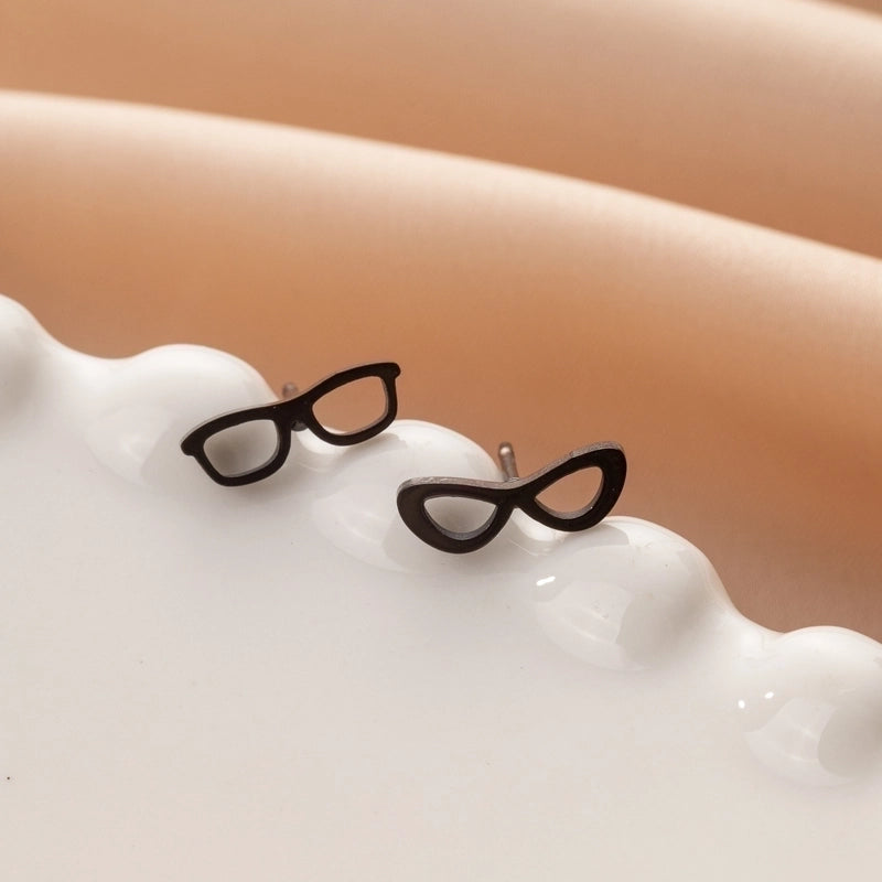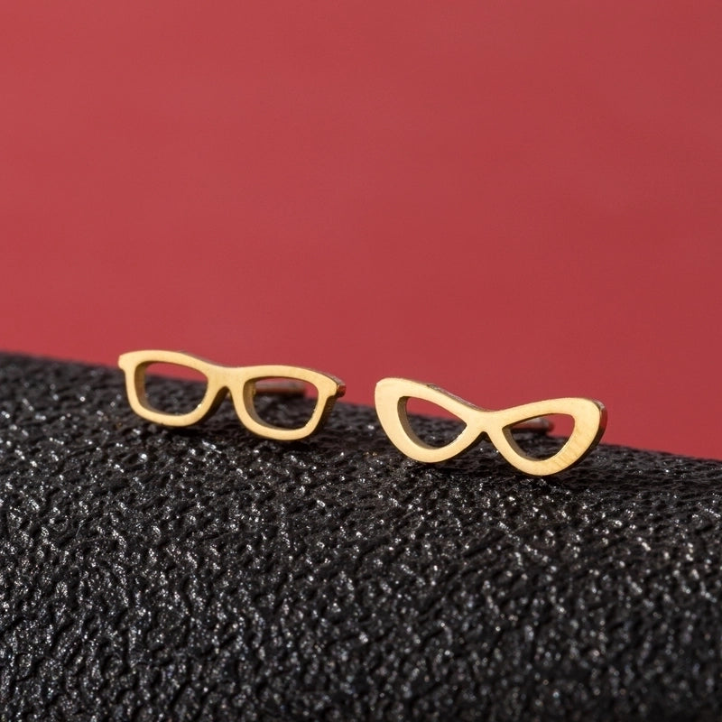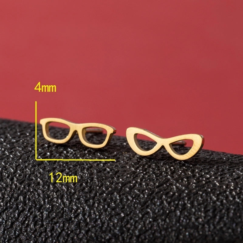 1 Pair Cute Minimalist Glasses Polishing 304 Stainless Steel 18K Gold Plated Ear Studs