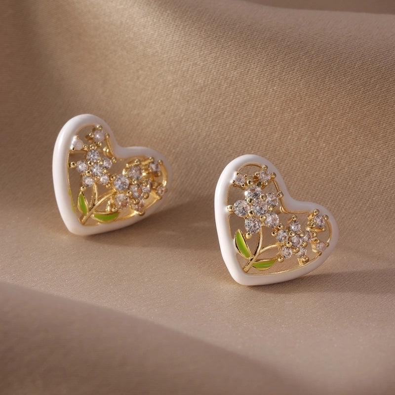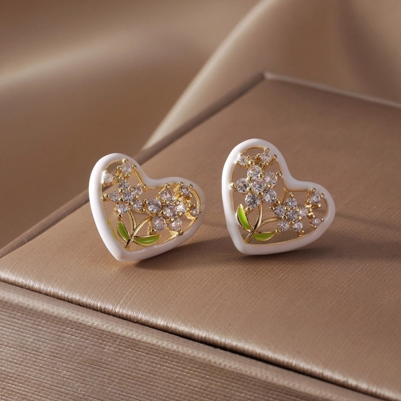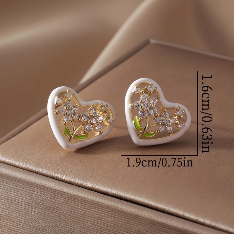 1 Pair Elegant Heart Shape Flower Enamel Inlay Copper Zircon Ear Studs