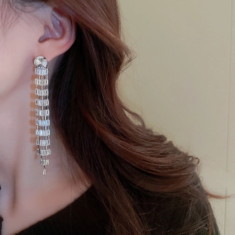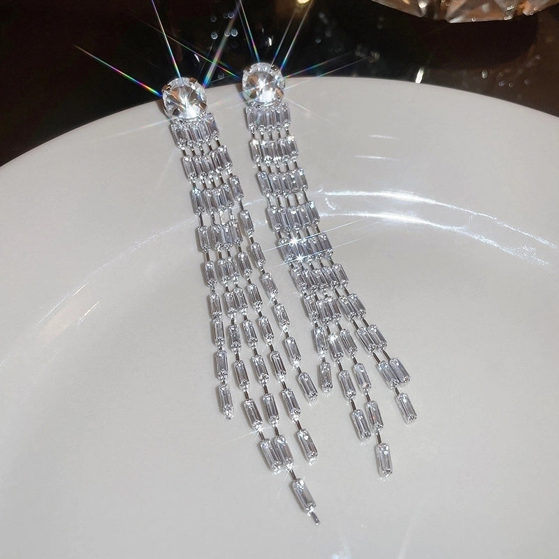 1 Pair Elegant Lady Geometric Tassel Copper Rhinestones Drop Earrings