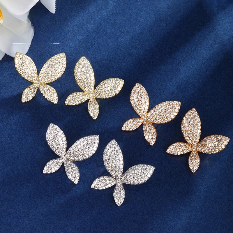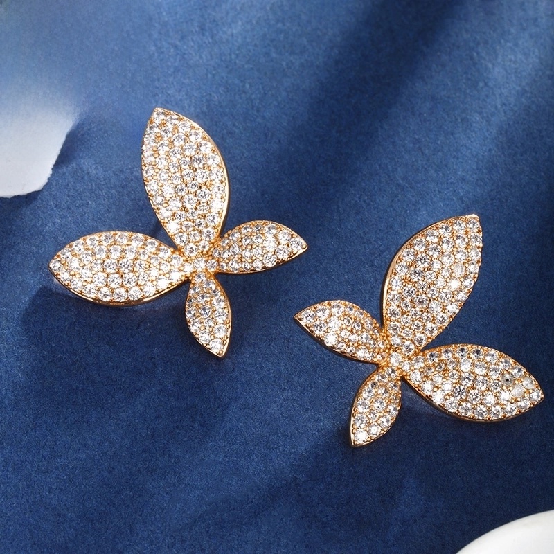 12 Pieces Elegant Sweet Streetwear Flower Butterfly Plating Inlay Copper Artificial Gemstones 14K Gold Plated Platinum Plated Ear Studs