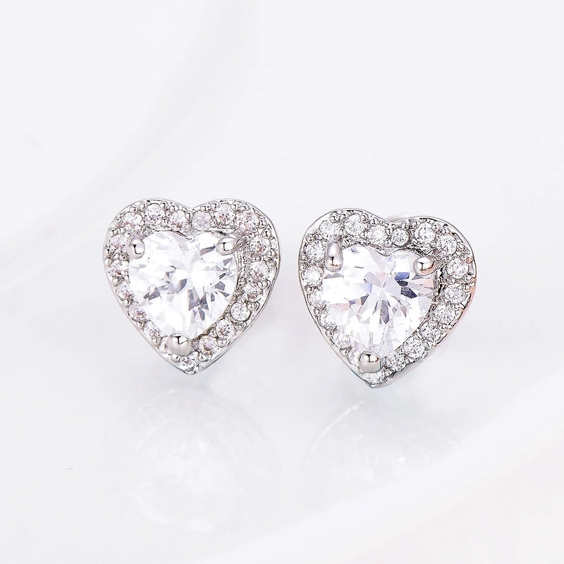1 Pair Fashion Heart Shape Copper Inlay Zircon Ear Studs