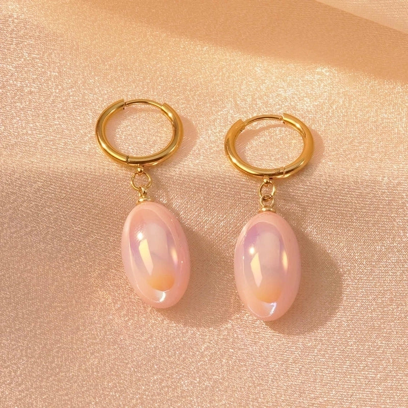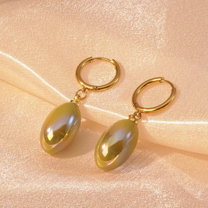 1 Pair IG Style Y2K Fairy Style Geometric Oval Plating Inlay 304 Stainless Steel Plastic 18K Gold Plated Drop Earrings