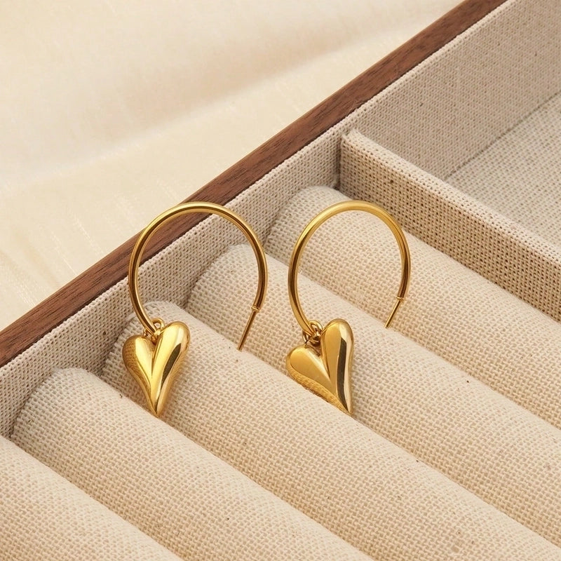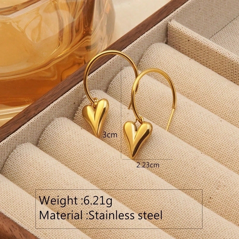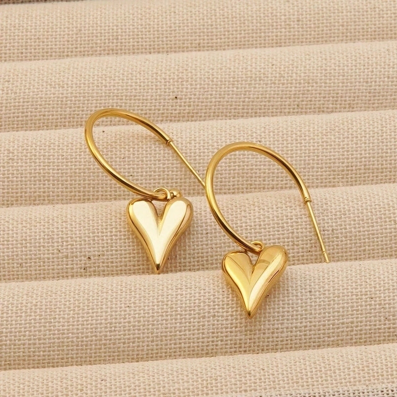 1 Pair Minimalist Classic Style Heart Shape Polishing Plating 304 Stainless Steel 18K Gold Plated Drop Earrings