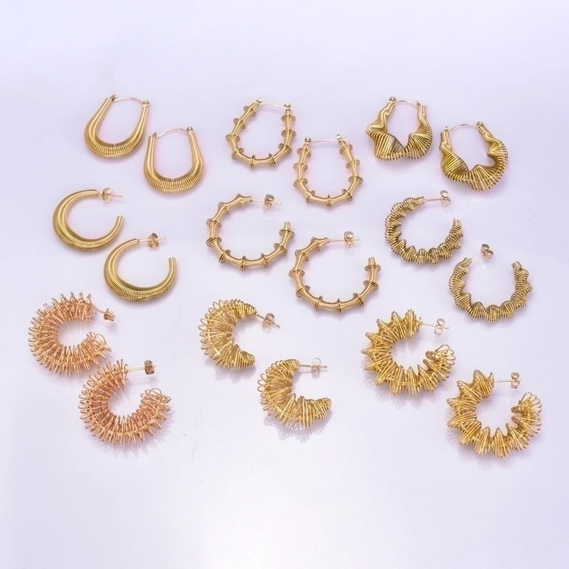 | Color | E124-Semicircle C- Shaped Spring Earrings Gold, E127-U Shape Spring Earrings Gold Color, E164-Irregular Twist Spring Earrings Gold, E116-Irregular-1 Spring Earrings Gold, E168-Irregular-3 Spring Earrings Gold, 1 Bamboo C- Shaped Spring Earrings Gold, E153-Irregular U-Shaped Spring Earrings Gold, E166-Irregular-2 Spring Earrings Gold |