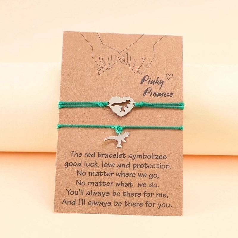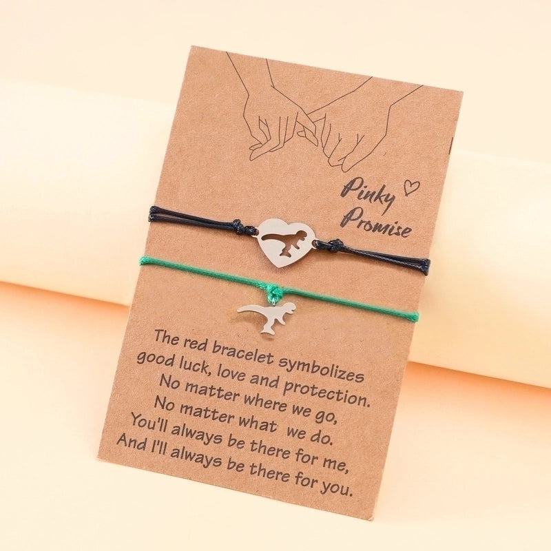 1 Pair Minimalist Dinosaur Heart Shape Stainless Steel Rope Polishing Hollow Out Bracelets