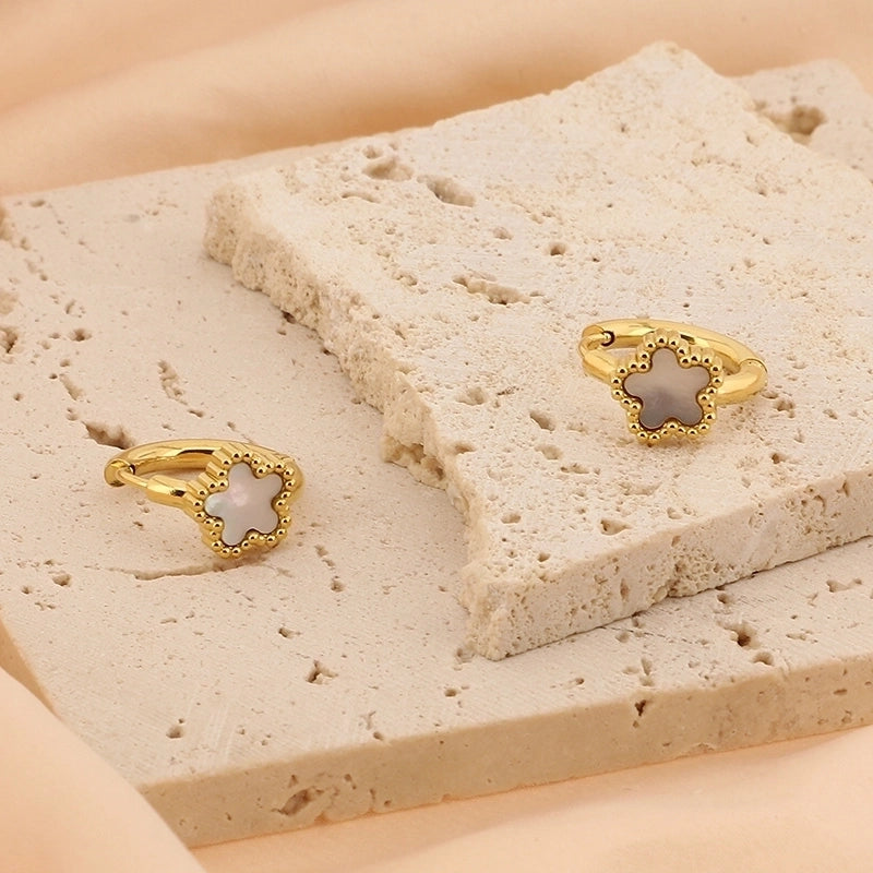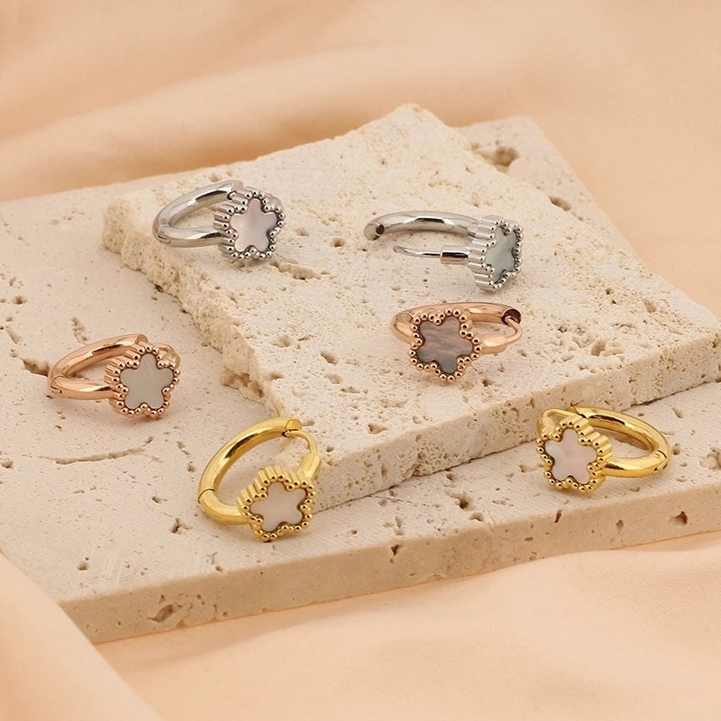 Be the first to review “1 Pair Minimalist Flower Inlay Titanium Steel Shell 18K Gold Plated Hoop Earrings” Cancel reply