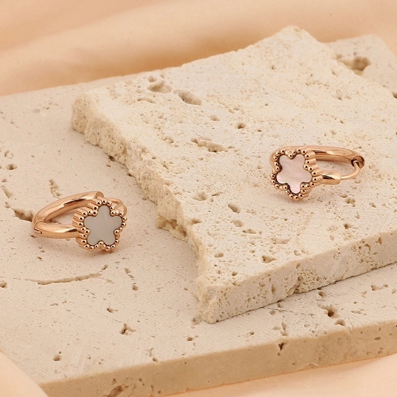 1 Pair Minimalist Flower Inlay Titanium Steel Shell 18K Gold Plated Hoop Earrings