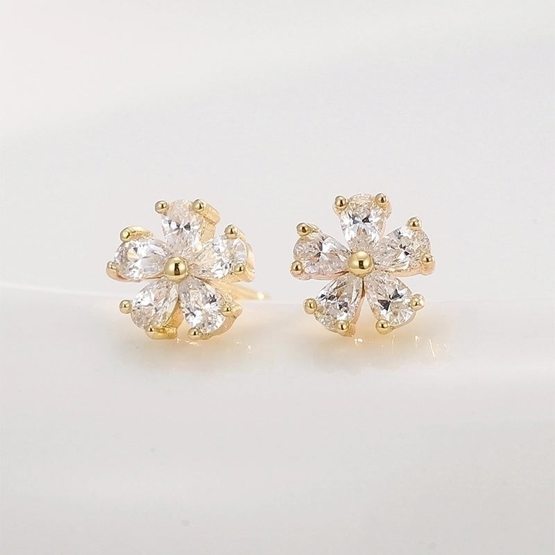 1 Pair Minimalist Flower Plating Inlay Copper Zircon 18k Gold Plated Ear Studs
