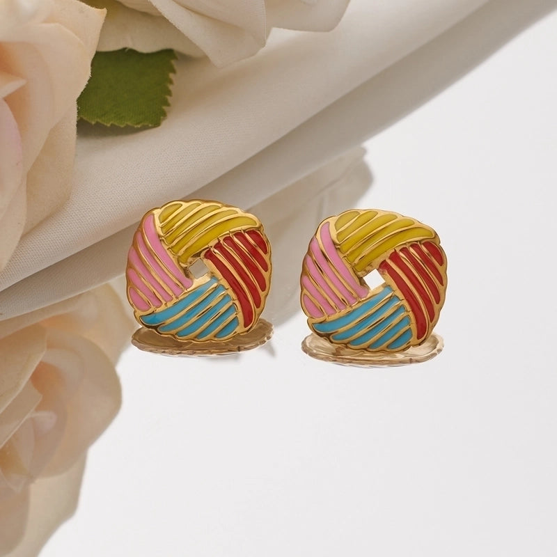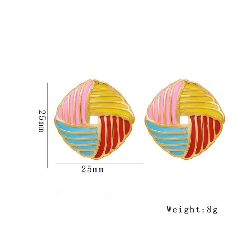 1 Pair Minimalist Square Enamel 304 Stainless Steel 18K Gold Plated Ear Studs