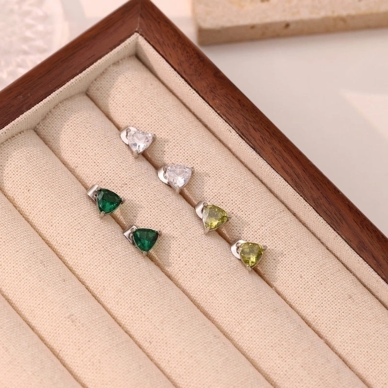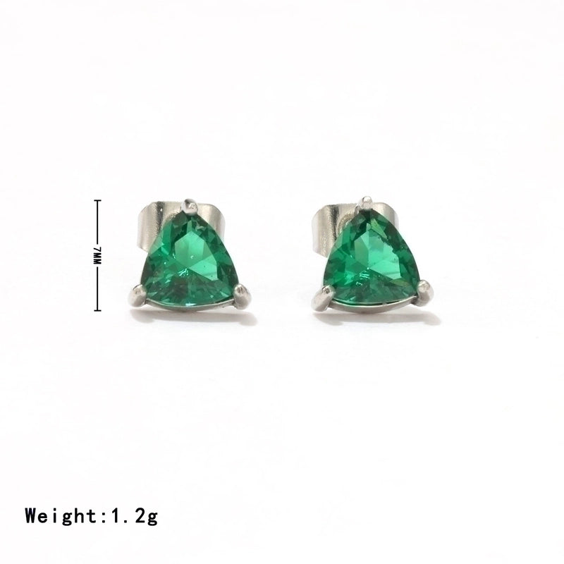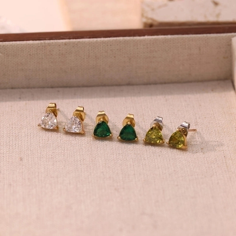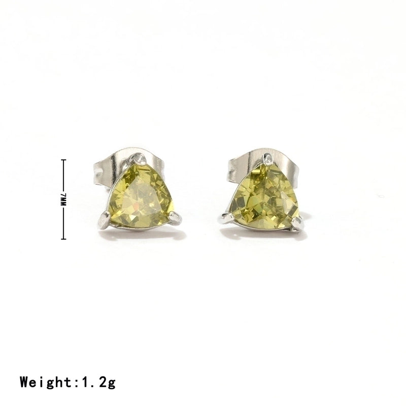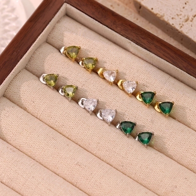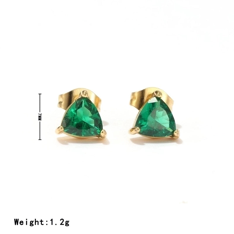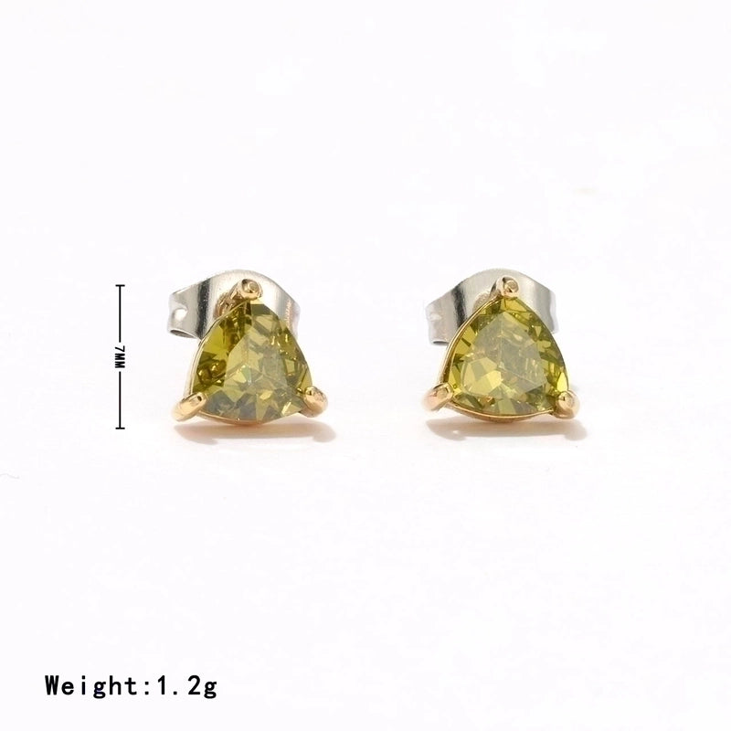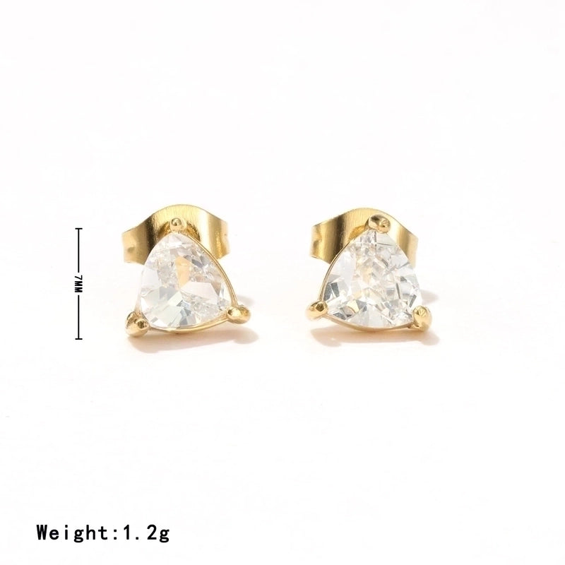 1 Pair Minimalist Triangle Inlay 304 Stainless Steel Zircon White Gold Plated Gold Plated Ear Studs