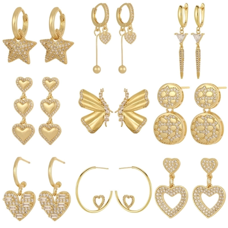 1 Pair Modern Style Classic Style Star Heart Shape Plating Inlay Copper Zircon Drop Earrings