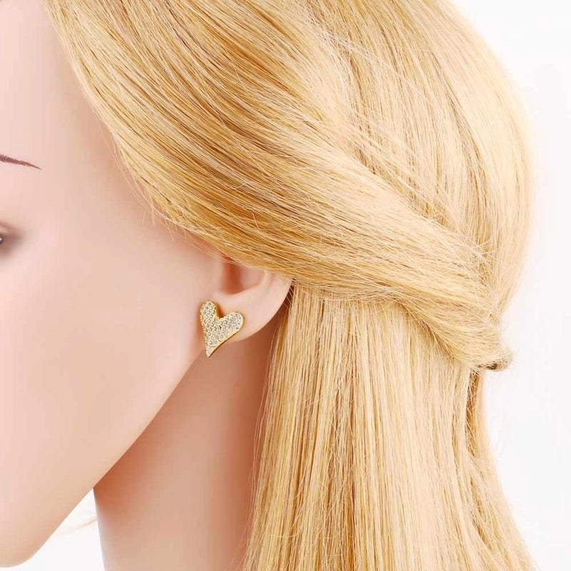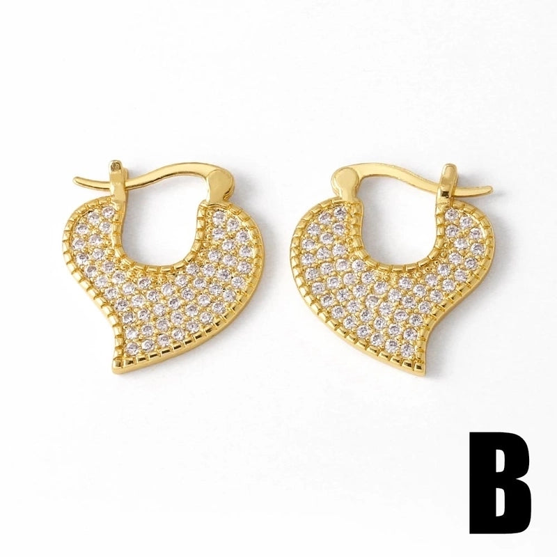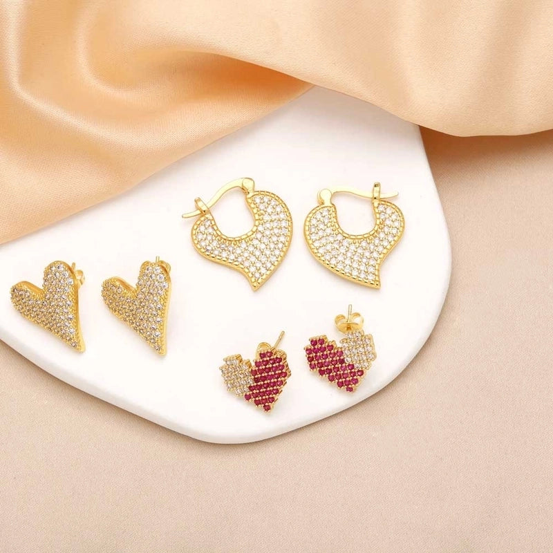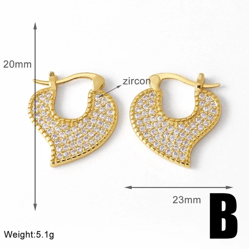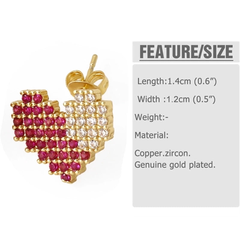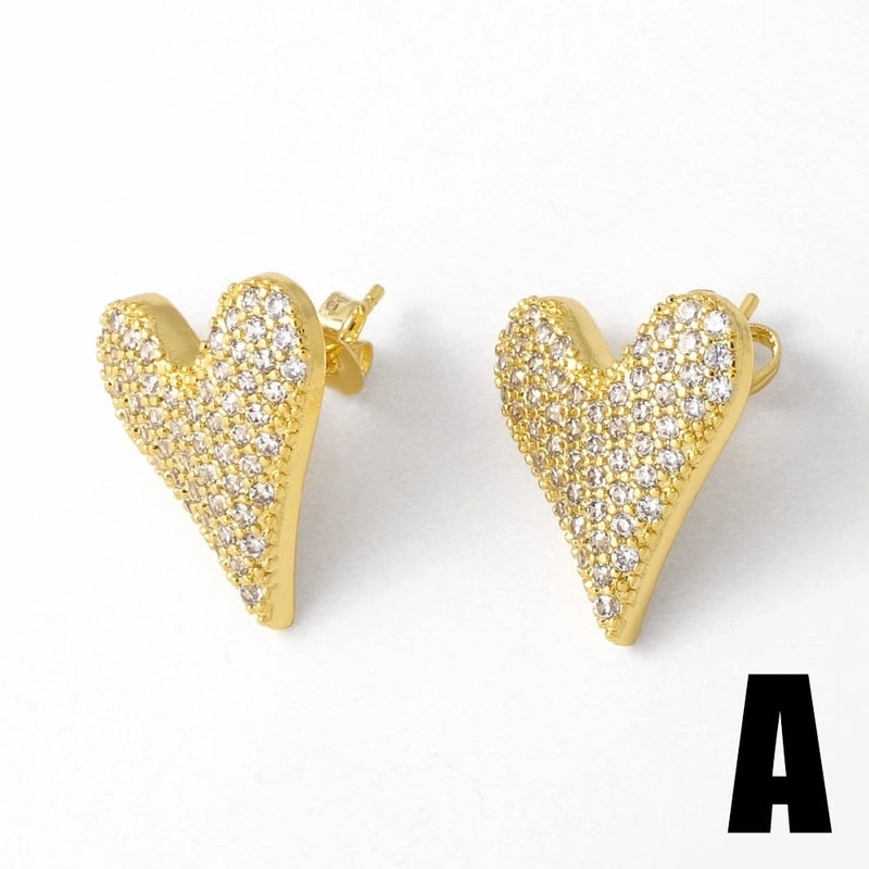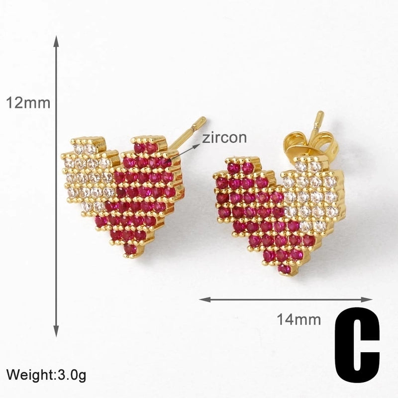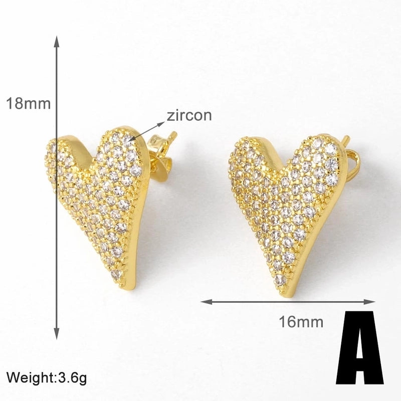 1 Pair Modern Style Minimalist Heart Shape Inlay Copper Zircon 18K Gold Plated Earrings Ear Studs
