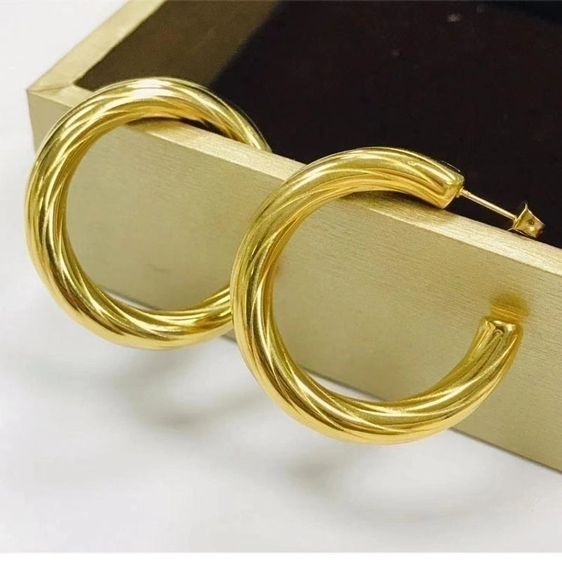 1 Pair Retro C Shape Plating Stainless Steel 18k Gold Plated Earrings
