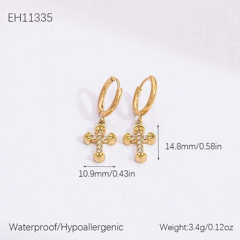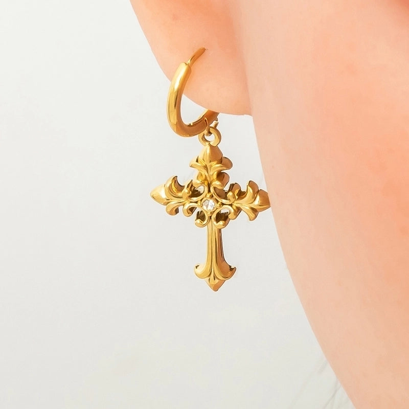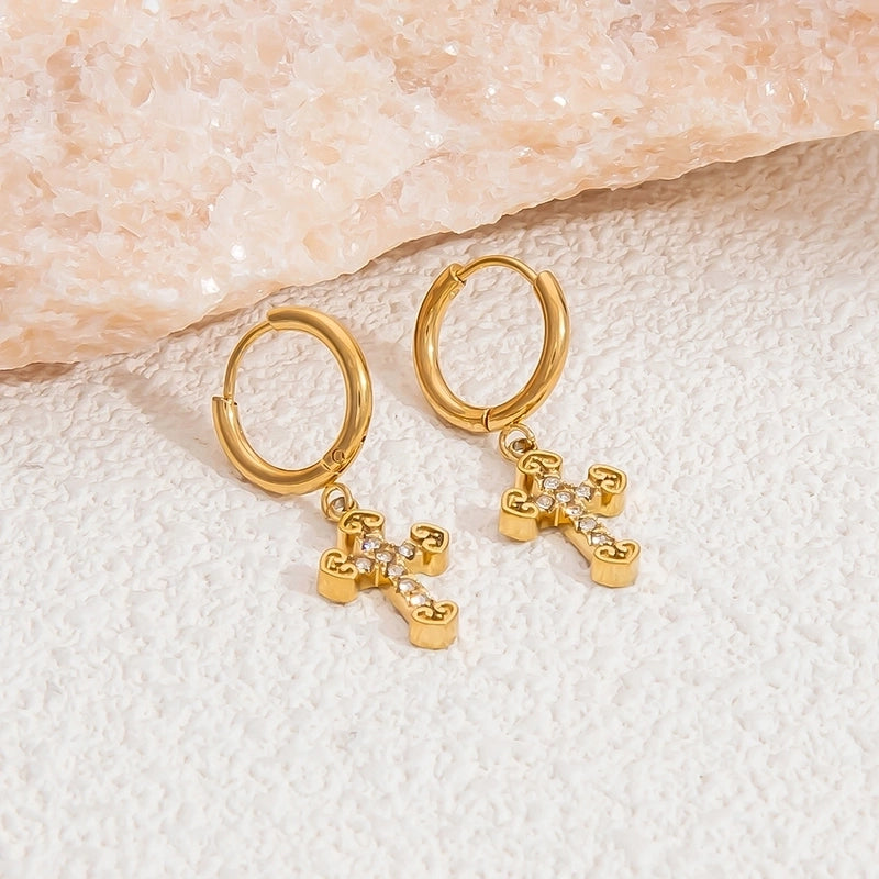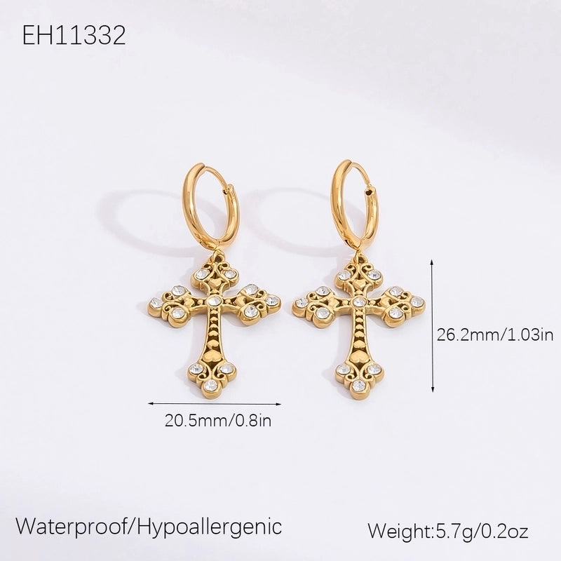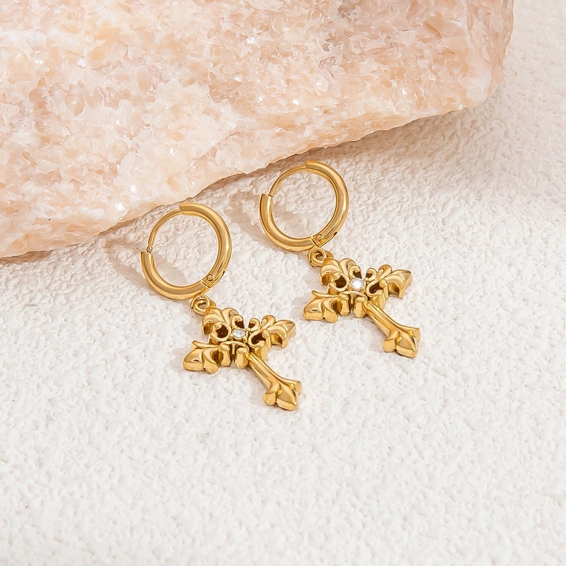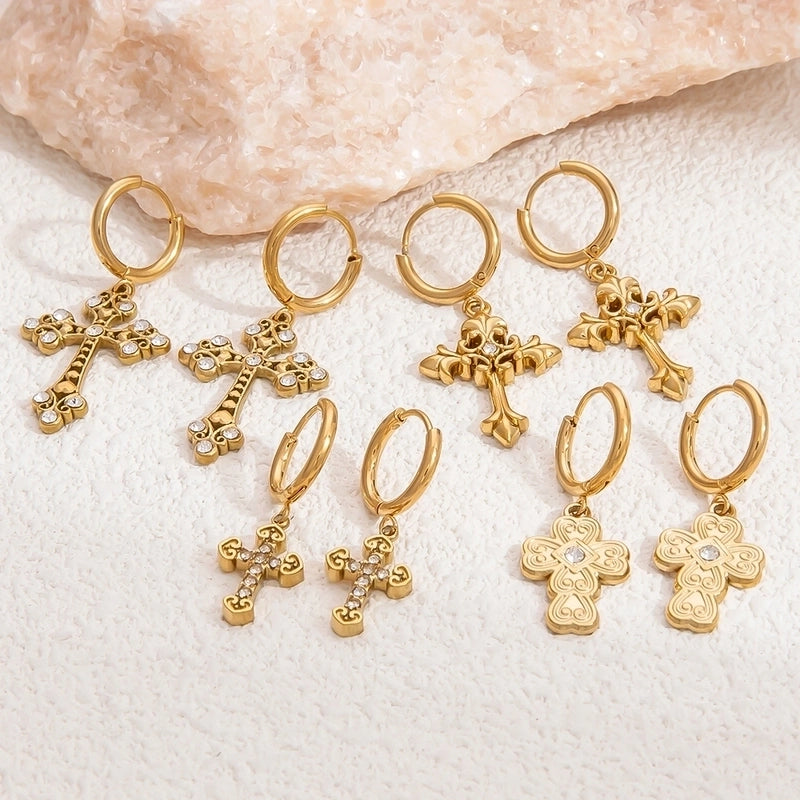 1 Pair Retro Classic Style Cross 304 Stainless Steel Zircon Drop Earrings