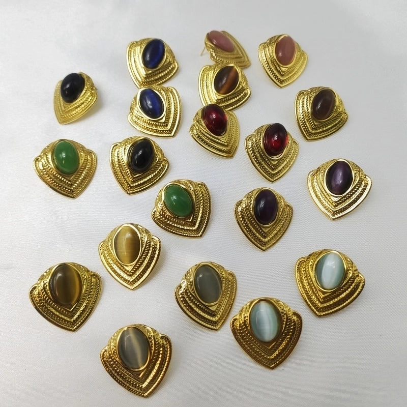 Be the first to review “1 Pair Retro Exaggerated Geometric Plating Inlay 304 Stainless Steel Opal 18K Gold Plated Ear Studs” Cancel reply