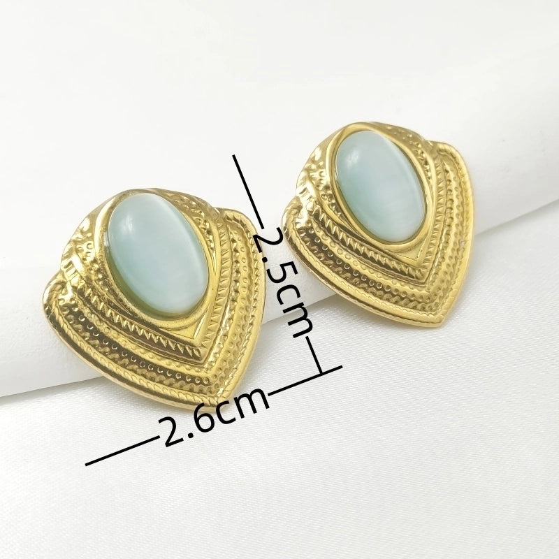 1 Pair Retro Exaggerated Geometric Plating Inlay 304 Stainless Steel Opal 18K Gold Plated Ear Studs
