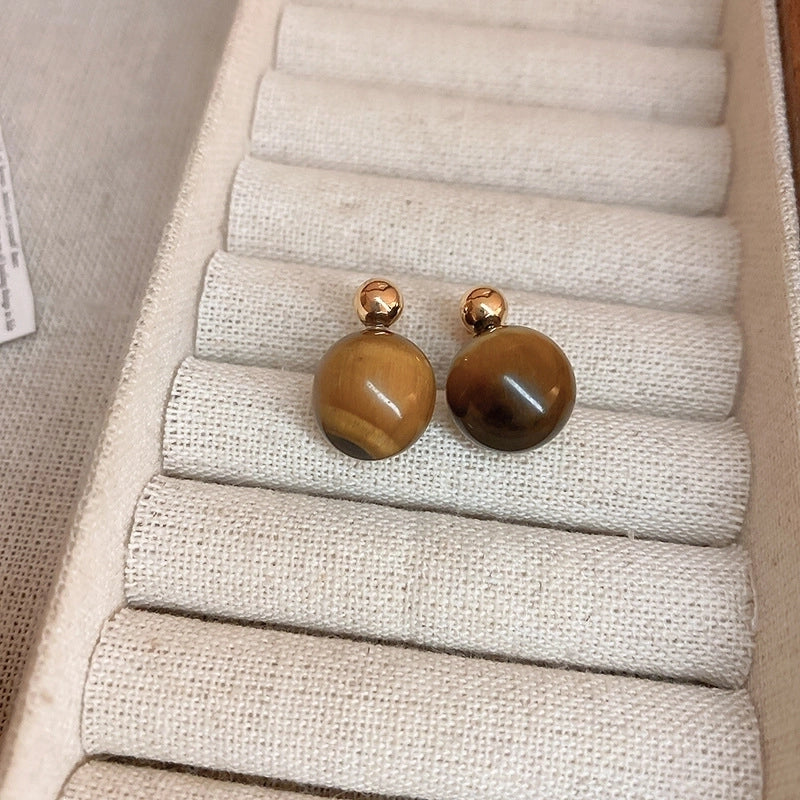 1 Pair Retro French Style Irregular Geometric Oval Inlay Copper Imitation Pearl Tiger Eye Drop Earrings Ear Studs