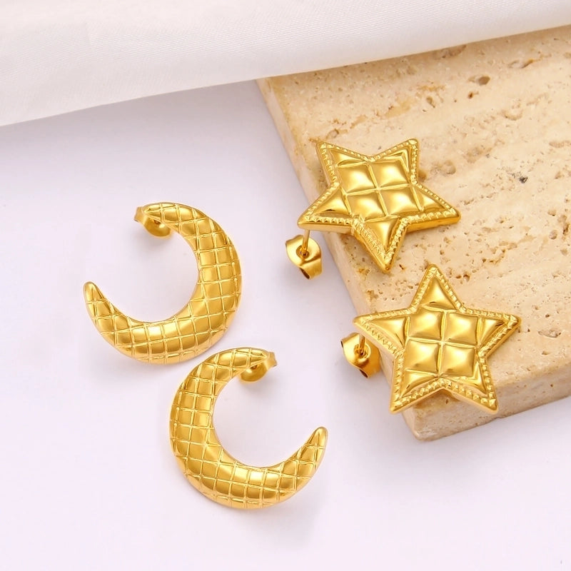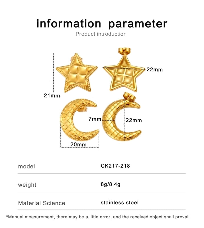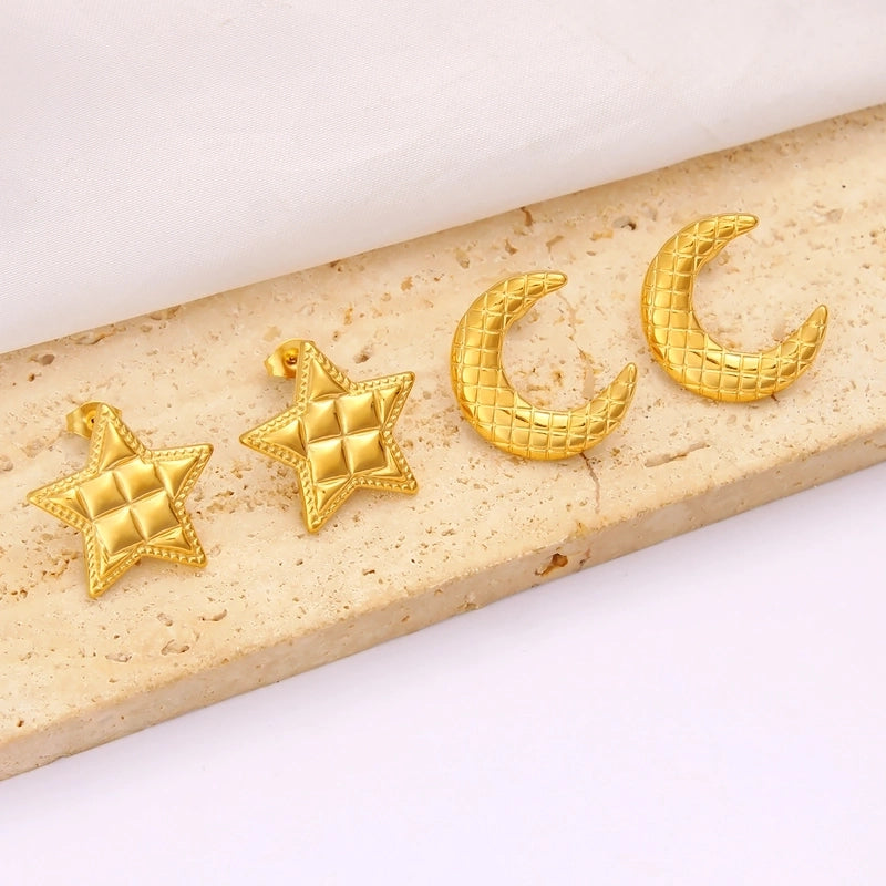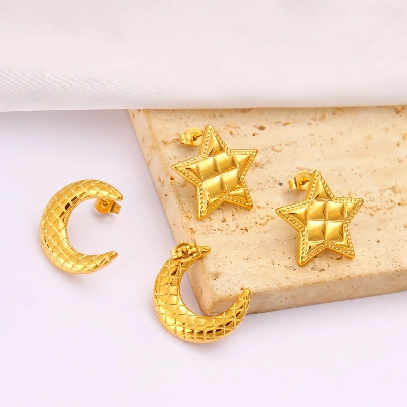 Be the first to review “1 Pair Retro French Style Sweet Pentagram Moon 304 Stainless Steel 18K Gold Plated Ear Studs” Cancel reply