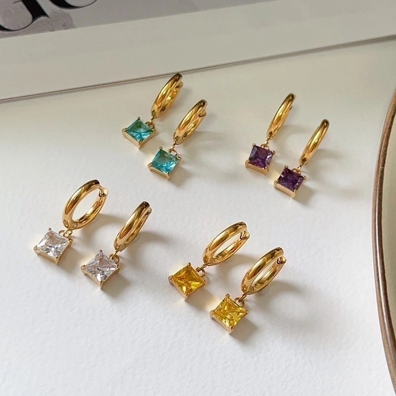 1 Pair Retro Square Inlay Titanium Steel Zircon Drop Earrings