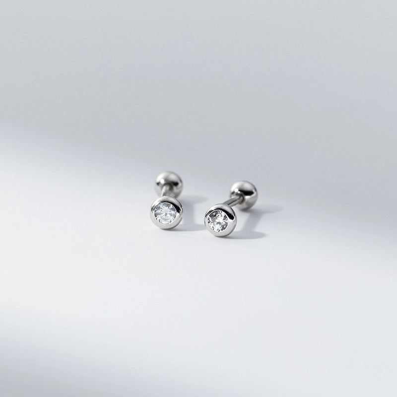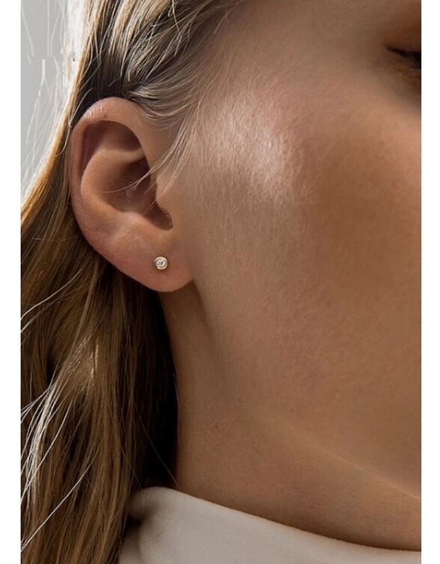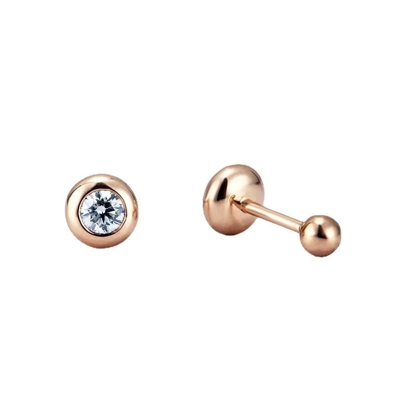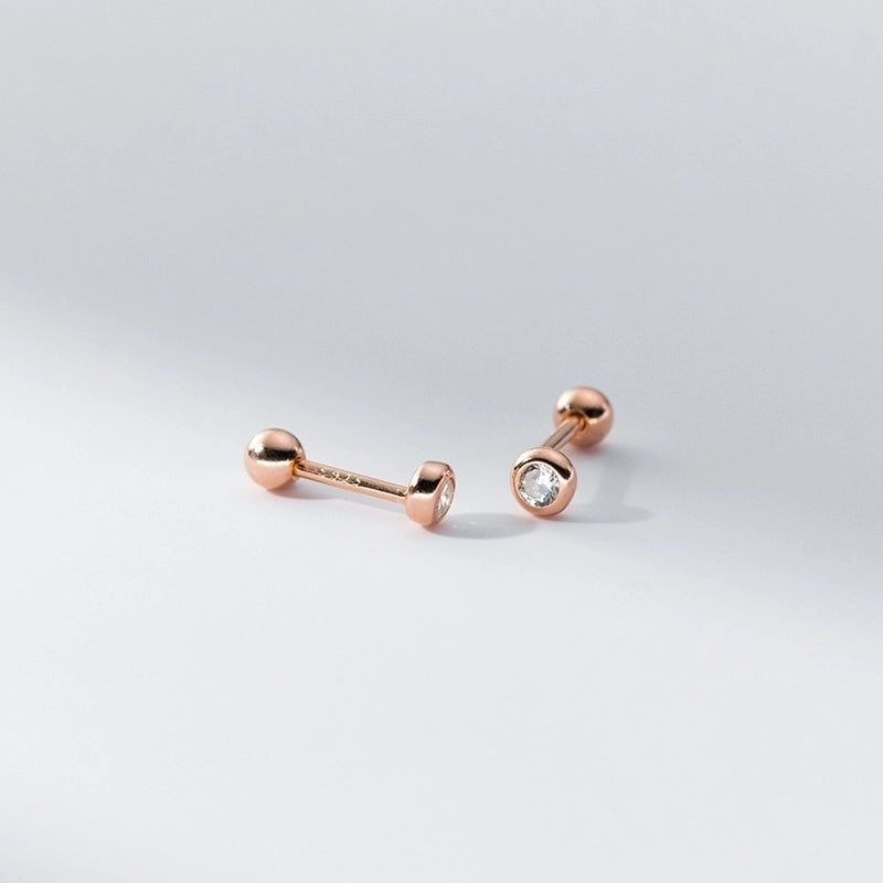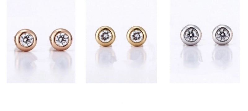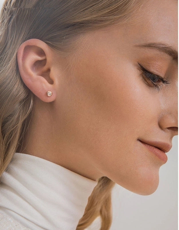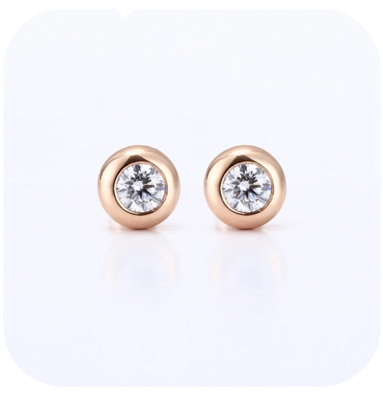 1 Pair Rose Gold Plated White Gold Plated 925 Sterling Silver Rhinestones Round Ear Studs