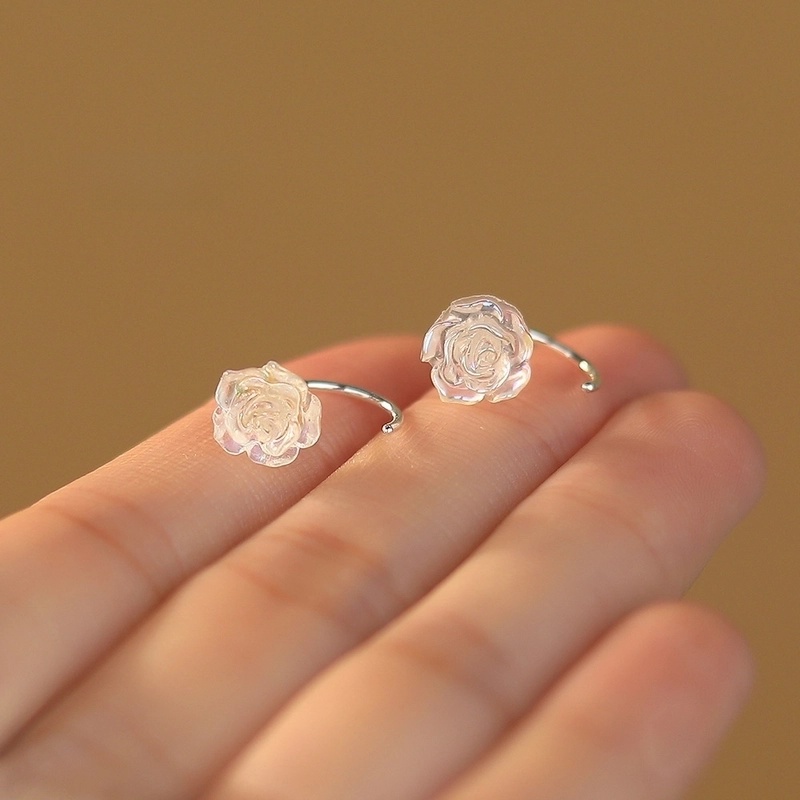 1 Pair S999 Silver Artificial Resin 925 Sterling Silver Earrings Rose Ear Hook