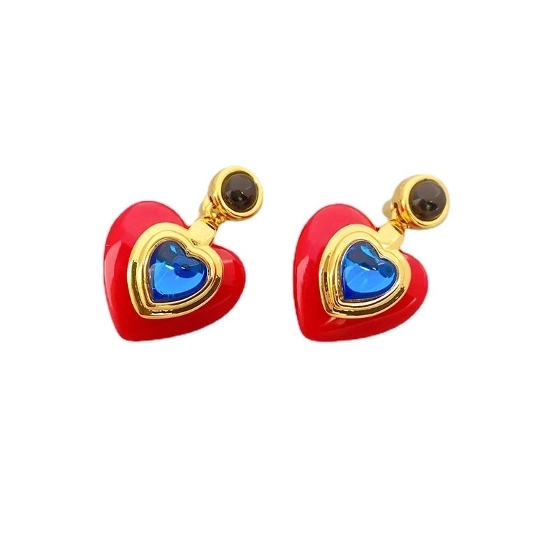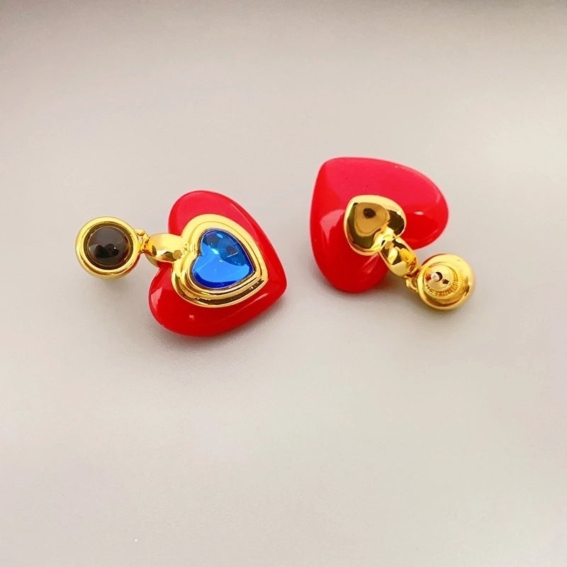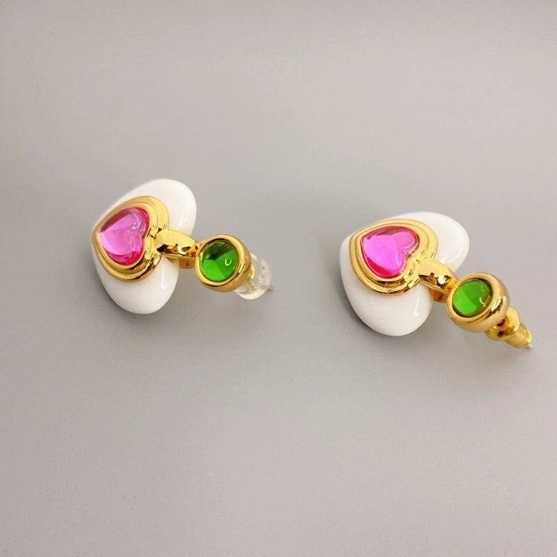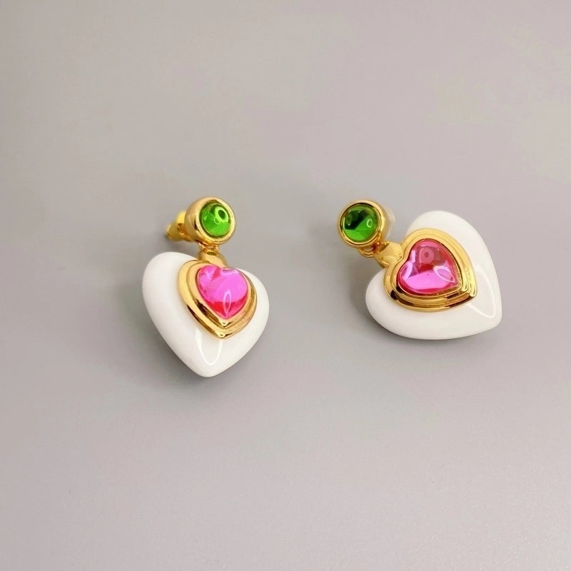 1 Pair Sweet Heart Shape Inlay Copper Artificial Gemstones Drop Earrings