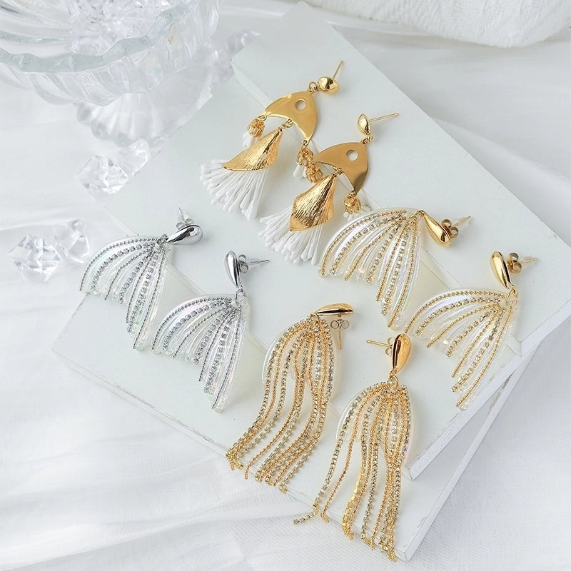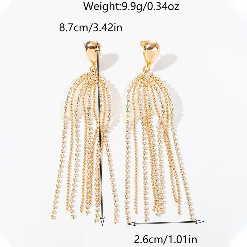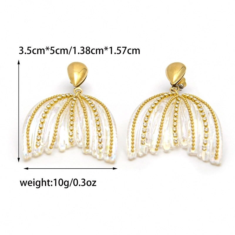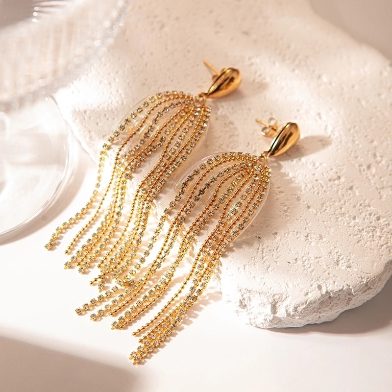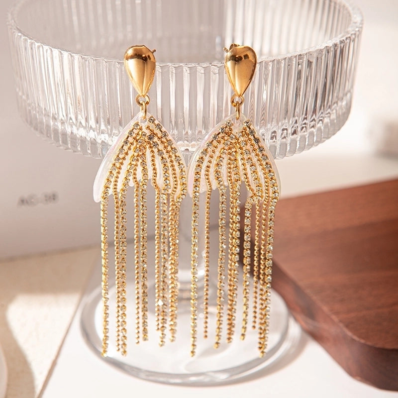 1 Pair Vintage Style Beach IG Style Water Droplets Tassel Fish Tail Inlay 304 Stainless Steel Diamond 14K Gold Plated Drop Earrings