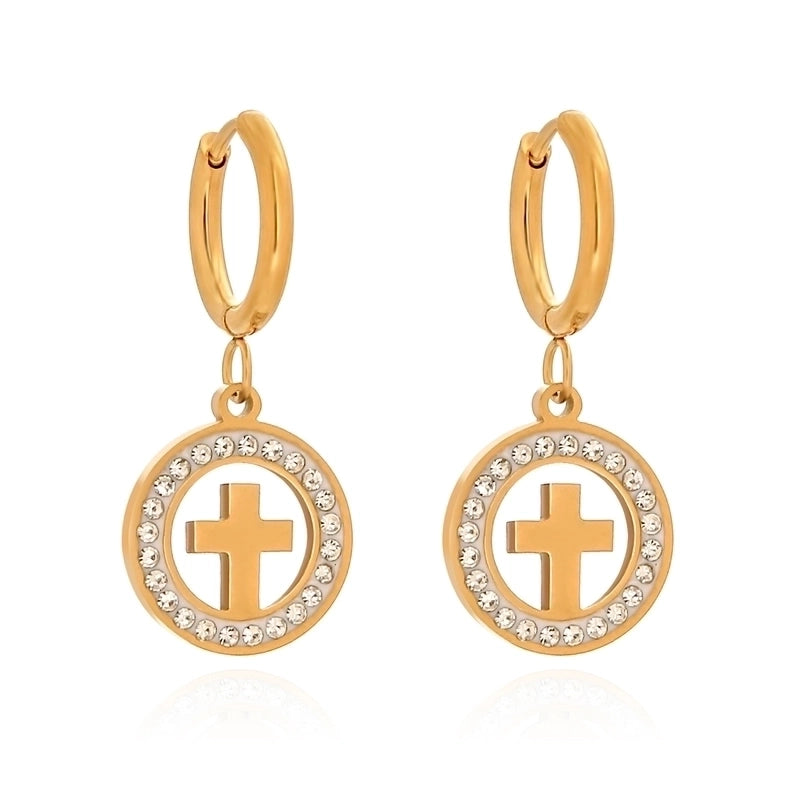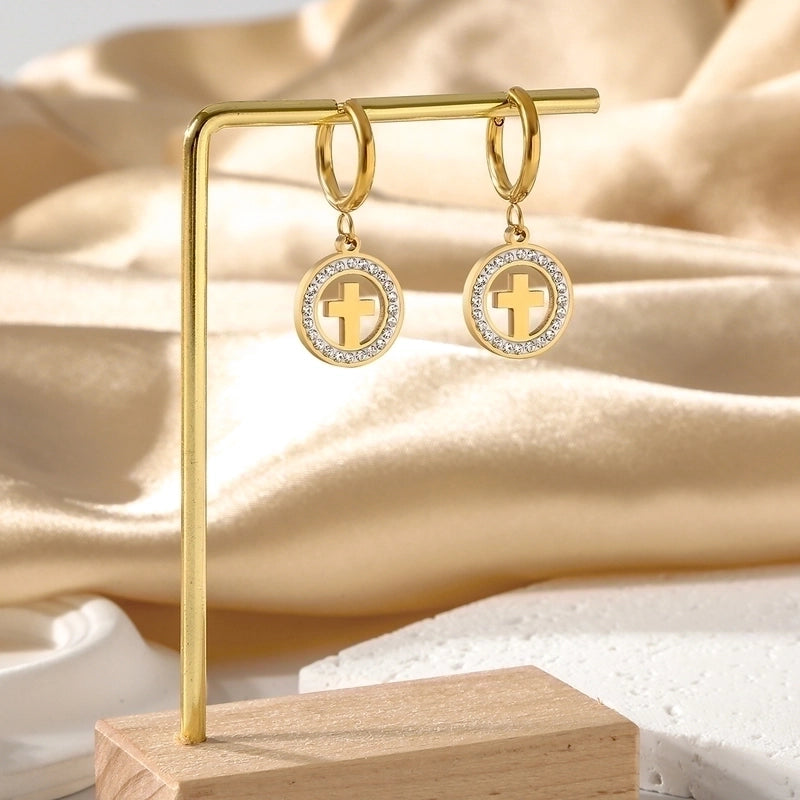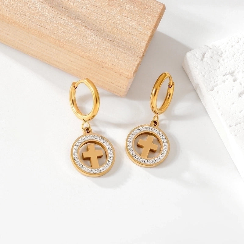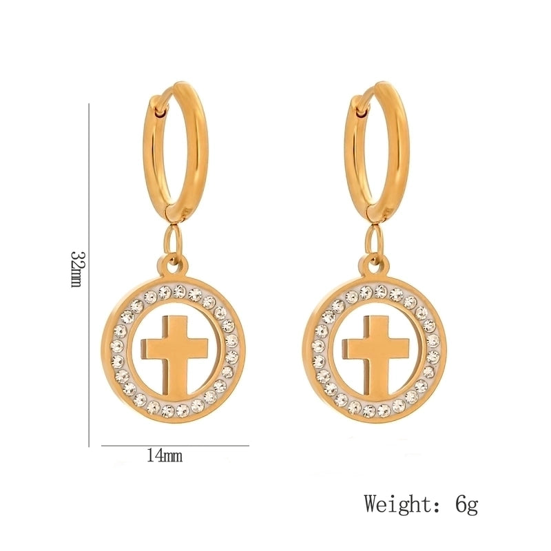Be the first to review “1 Pair Vintage Style Classic Style Commute Cross Circle Hollow Out Inlay 304 Stainless Steel Rhinestones 18K Gold Plated Drop Earrings” Cancel reply