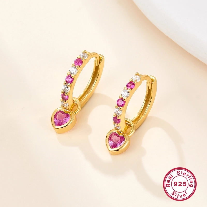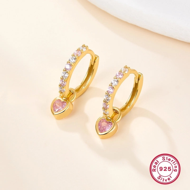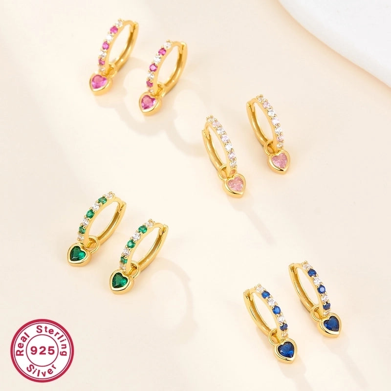 1 Pair White Gold Plated Gold Plated 925 Sterling Silver Zircon Heart Shape Earrings