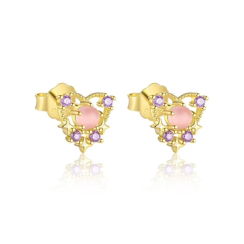 1 Piece 1 Pair 925 Sterling Silver Zircon Geometric Heart Shape Ear Studs