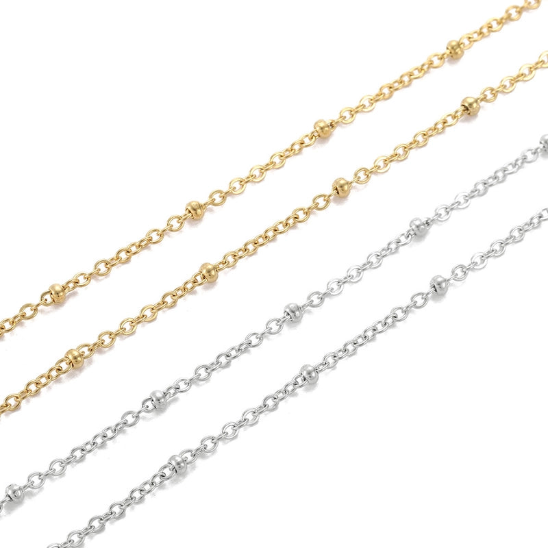 | Color | Silver, Chain Width 1.5mm, Beads 2mm, Silver, Chain Width 2mm, Beads 3mm, Gold, Chain Width 1.5mm, Beads 2mm, Gold, Chain Width 2mm, Beads 3mm |