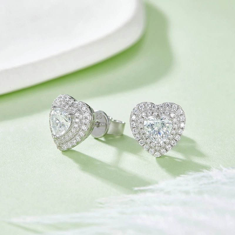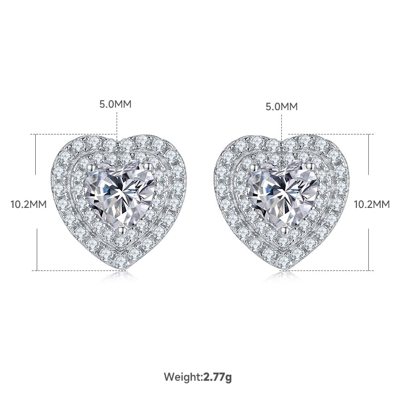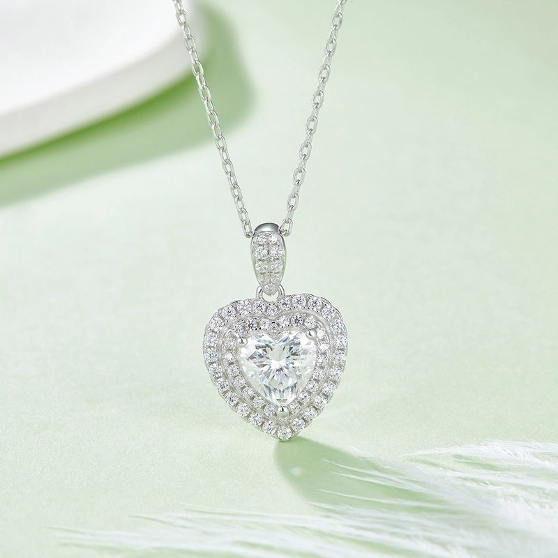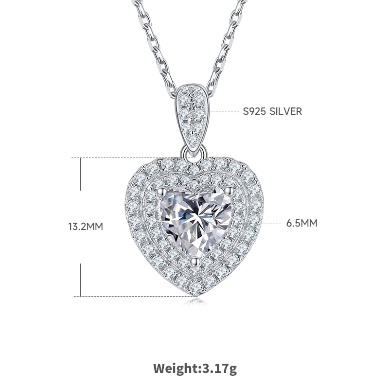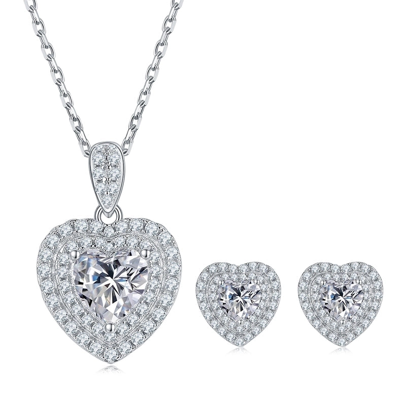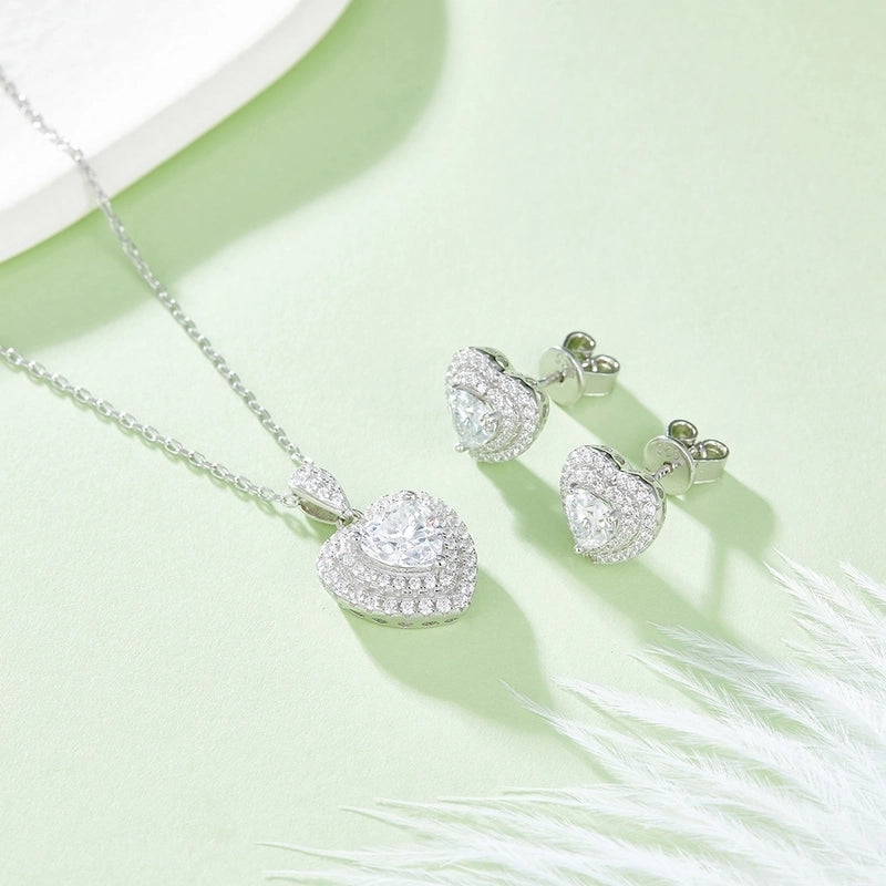 1 Piece 925 Sterling Silver Moissanite Heart Shape Earrings Necklace