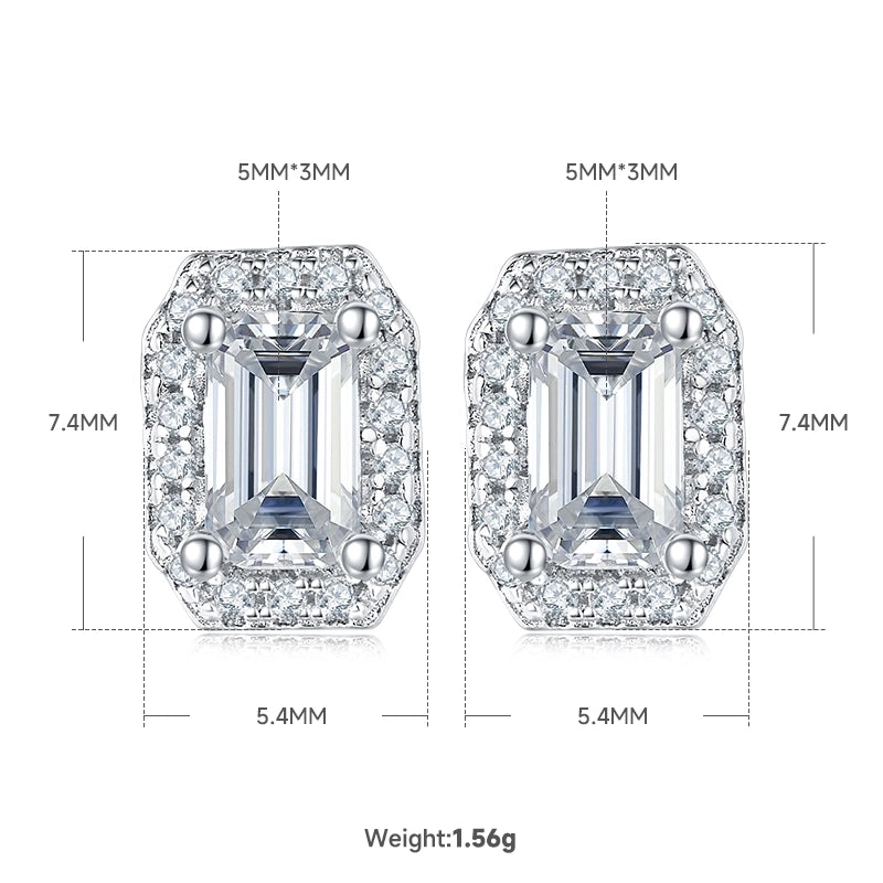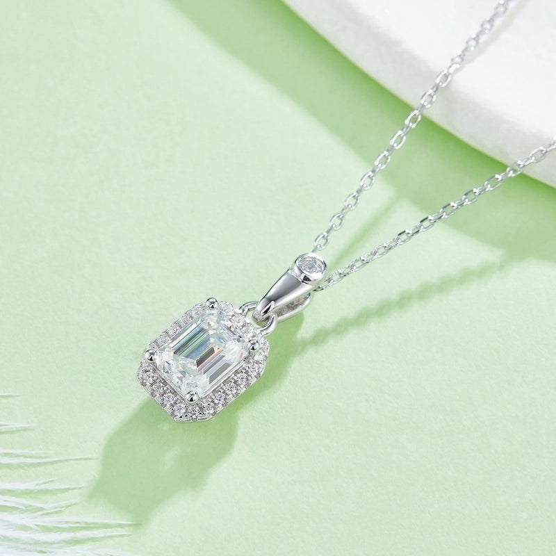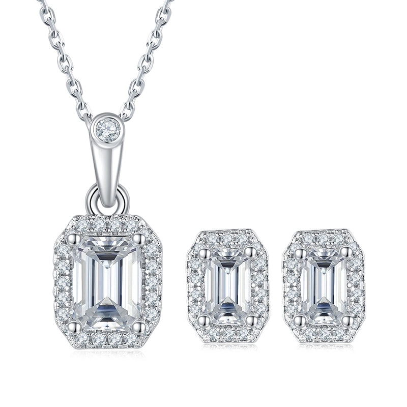 1 Piece 925 Sterling Silver Moissanite Rectangle Earrings Necklace