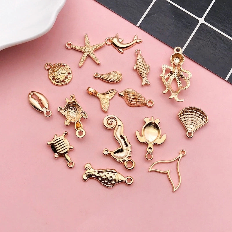 | Color | Dolphin 11×20, Mermaid Tail 13x15mm, Fishtail 17x20mm, Shell 7x15mm, Conch 9x19mm, Turtle 11x18mm, Shell 16×16.5mm, Fish 9x20mm, Shell 8x17mm, Starfish 12x16mm, Turtle 12x22mm, Starfish 18.5x20mm, Tiger Grouper 9x25mm, Octopus 16.5×30.5mm, Turtle 16×22.5mm, Seahorse 15×30, SN598-16 Types of KC Gold Ocean Series Each Model 1 |