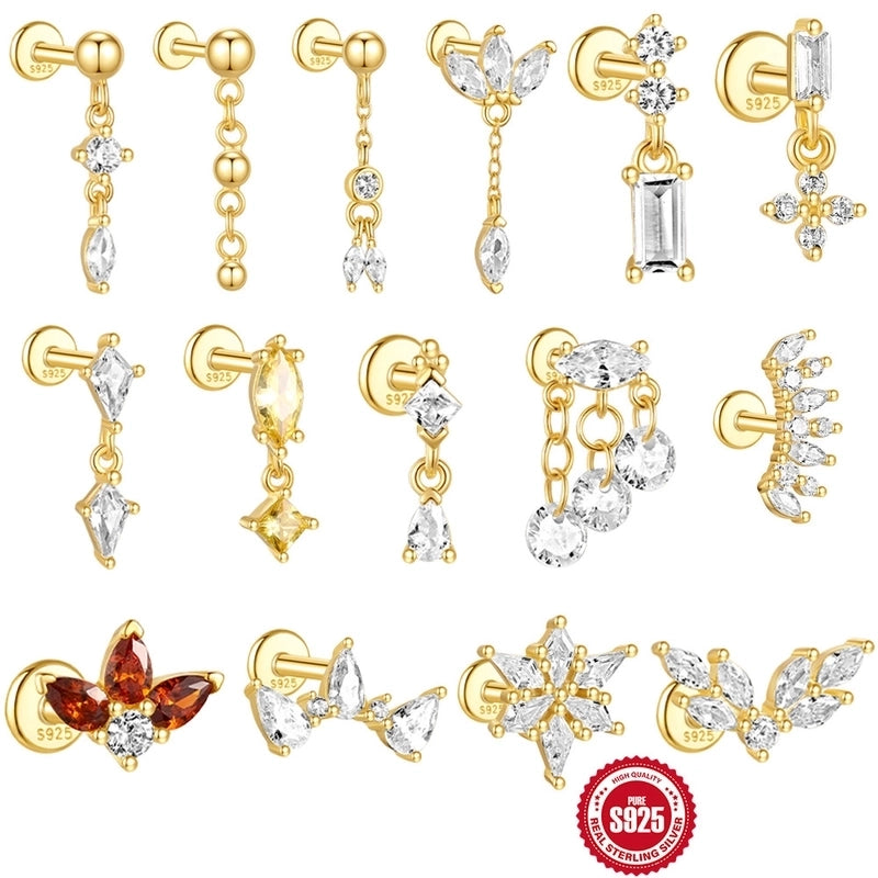 1 Piece Ear Cartilage Rings & Studs Shiny IG Style Geometric 925 Sterling Silver Inlay Zircon Ear Cartilage Rings & Studs