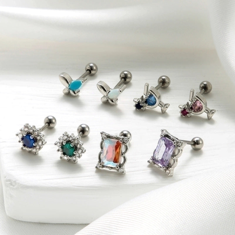1 Piece Ear Cartilage Rings & Studs Sweet Flower Butterfly 316L Stainless Steel Copper Plating Inlay Gem Zircon