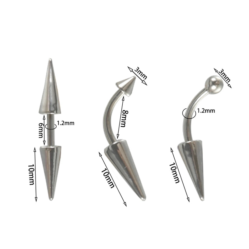 | Color | Steel Pointed Cone Ear Studs-6mm, Steel Pointed Cone Ball Eyebrow Ring-8mm, Steel Sharp Cone Eyebrow Ring-8mm, Black Cone Ball Eyebrow Ring-8mm, Black Cone Cone Eyebrow Ring-8mm, Golden Cone Ball Eyebrow Ring-8mm, Golden Cone Cone Eyebrow Ring-8mm, Black Pointed Cone Ear Studs-6mm, Gold Pointed Cone Stud Earrings-6mm |