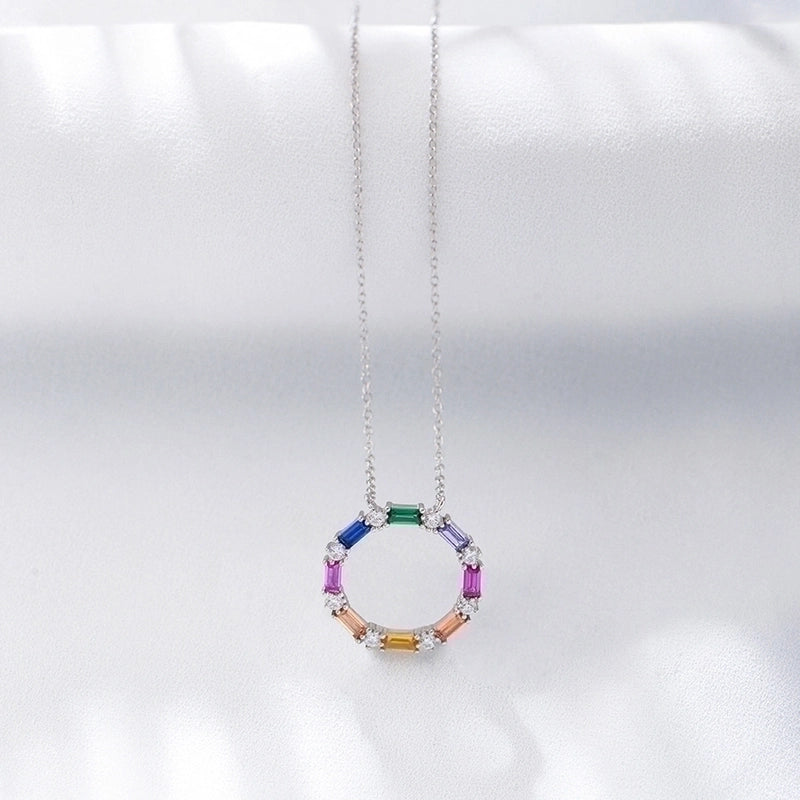 925 Sterling Silver Zircon Inlay Circle Necklace