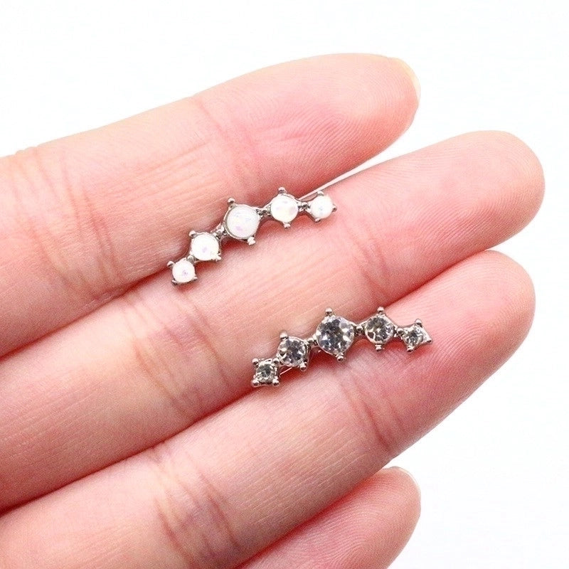 1 Piece Minimalist Geometric Plating Inlay 316 Stainless Steel Copper Acrylic Rhinestones White Gold Plated Ear Studs Cartilage Earrings