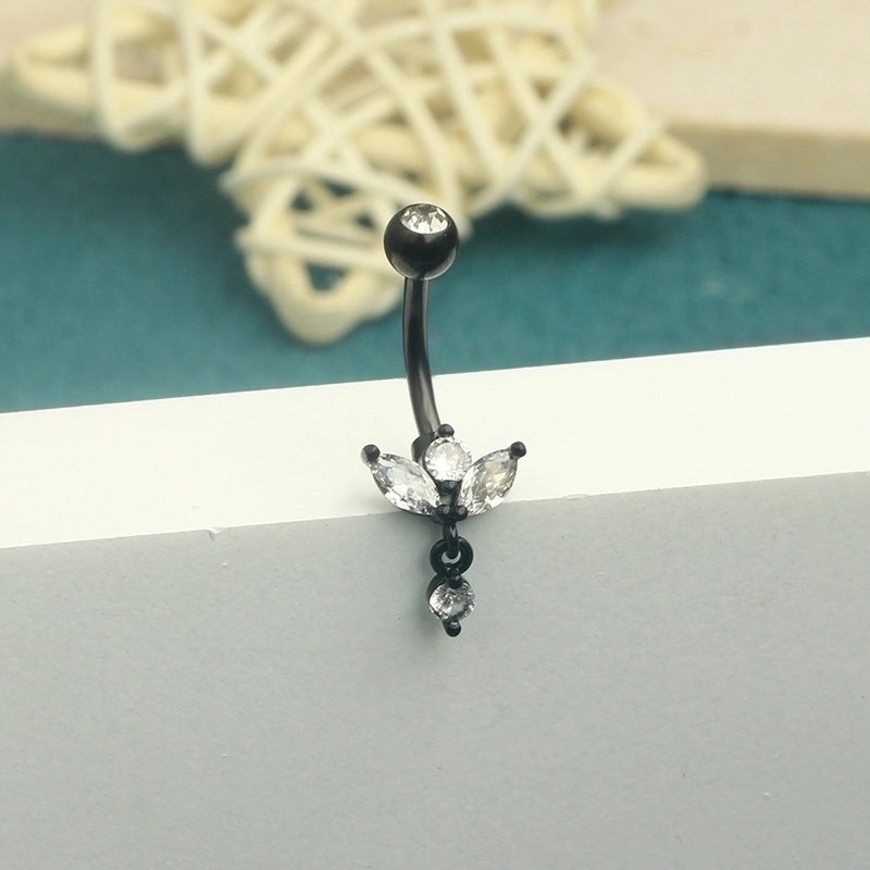 1 Piece Minimalist Heart Shape Plating Inlay Stainless Steel Zircon Ring Navel Decoration