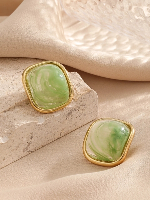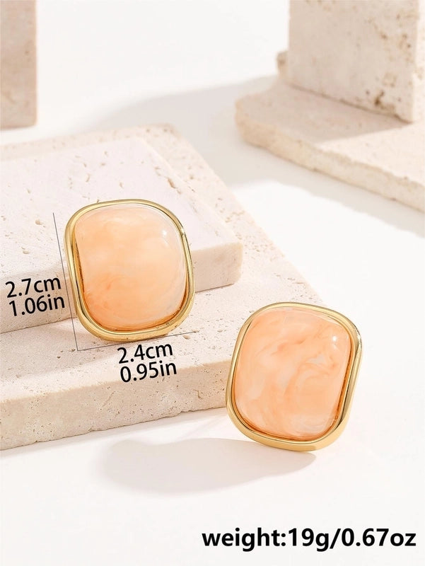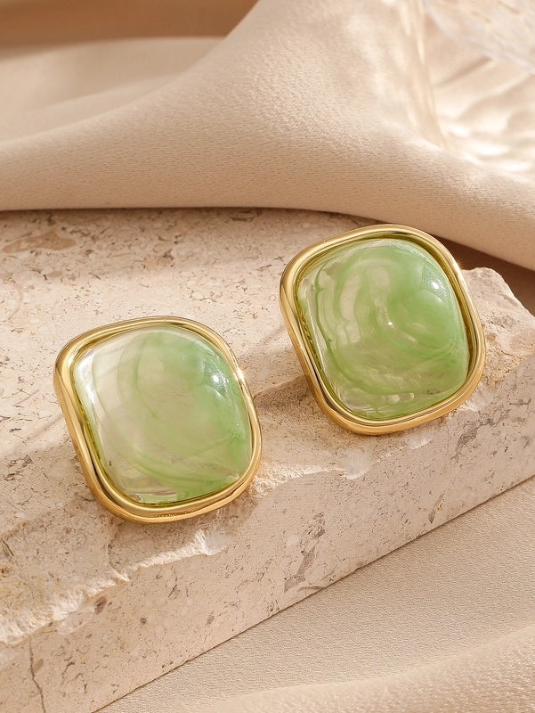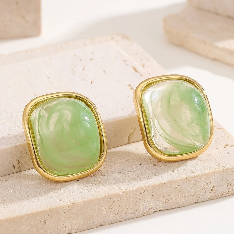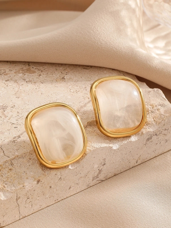 1 Piece Minimalist Rectangle Inlay Titanium Steel Resin 18K Gold Plated Ear Studs