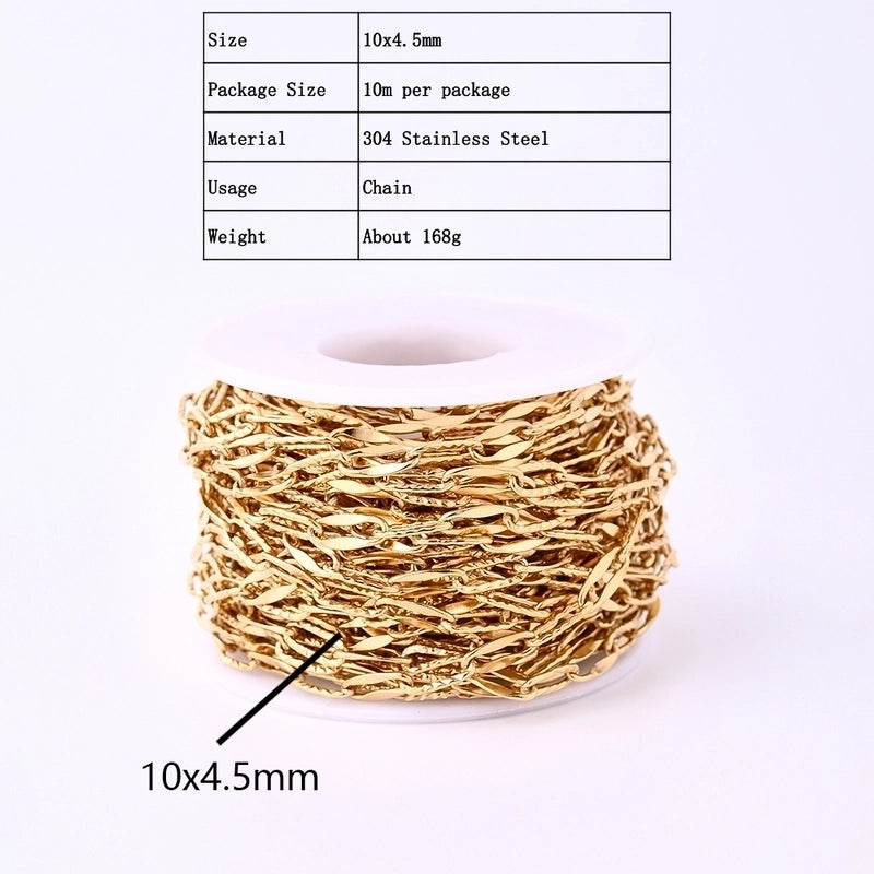 1 Roll 10×4.5mm 304 Stainless Steel 18K Gold Plated Solid Color Polished Chain