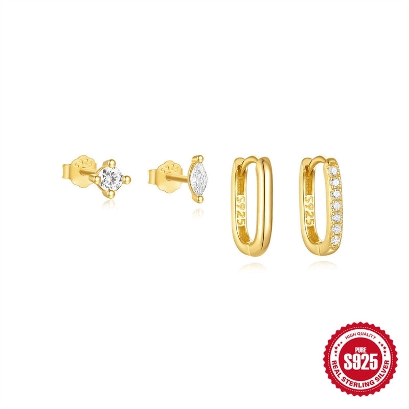 1 Set 925 Sterling Silver Zircon Geometric Earrings