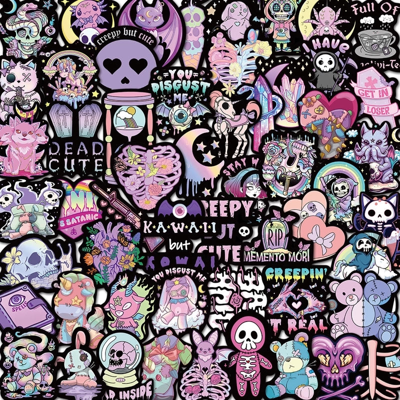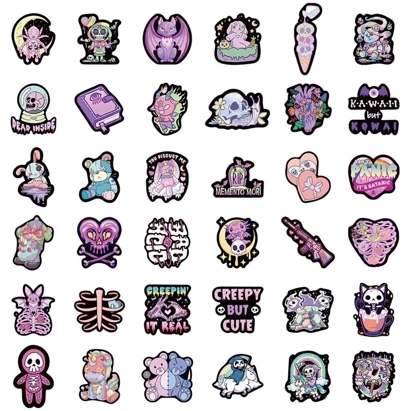 1 Set Heart Shape Skull School Halloween PVC Self-adhesive Cute Stickers