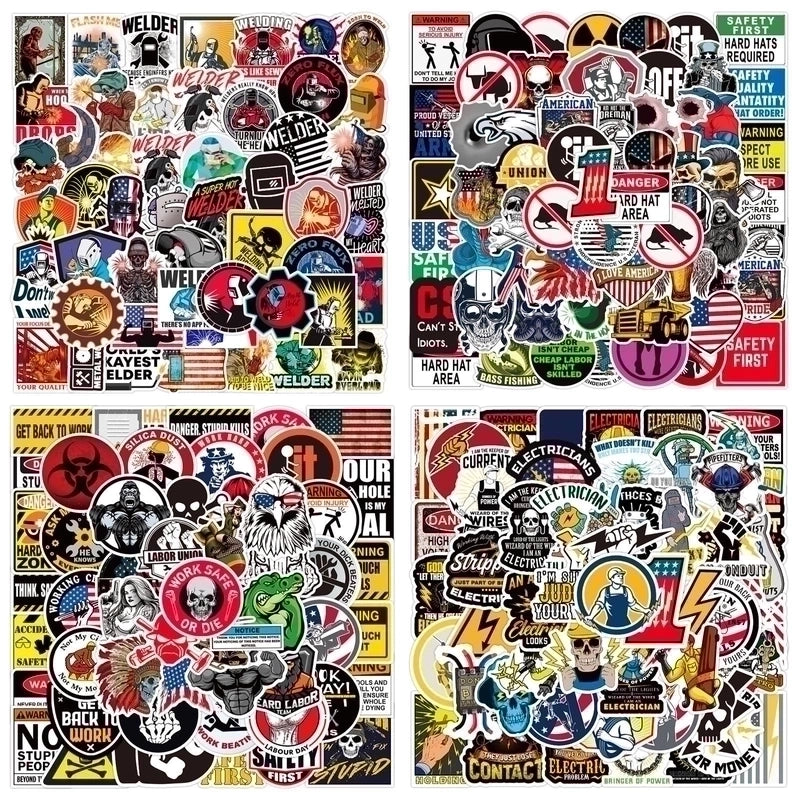 | Color | Welding worker -50pcs, electrician-50PCS, helmet-A50pcs, helmet-B50pcs, Warning signs -A50PCS, Warning signs-B50, Firefighter stickers |