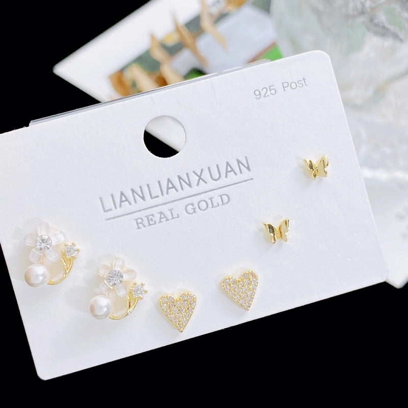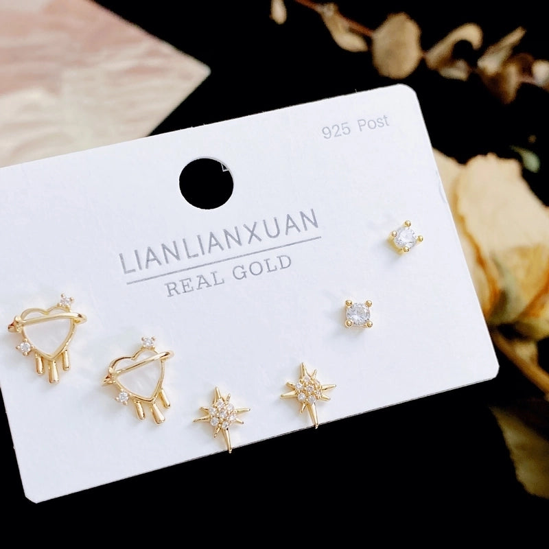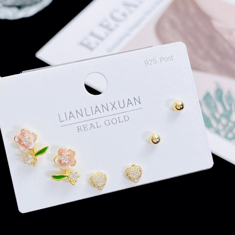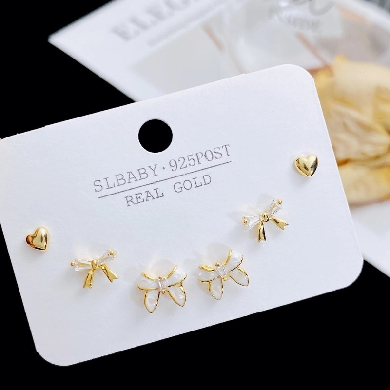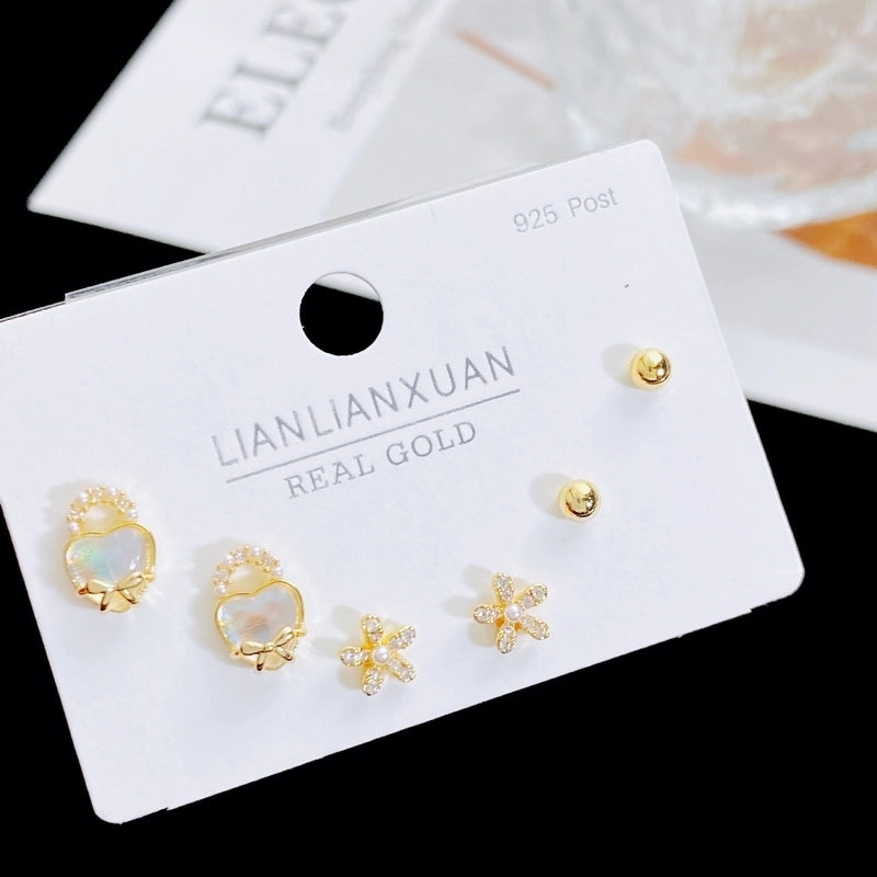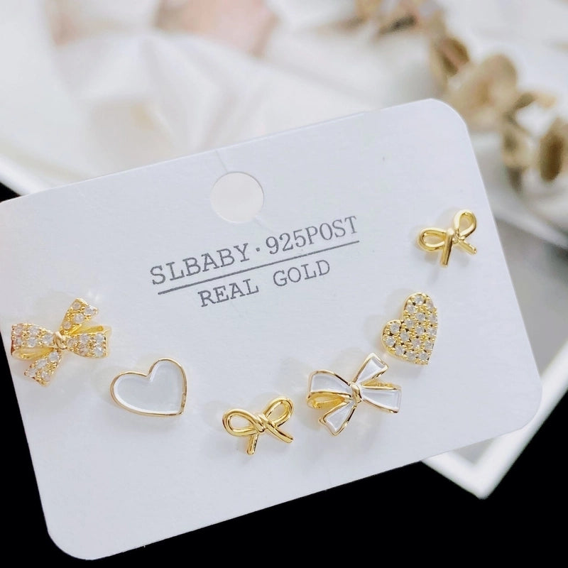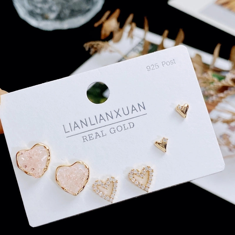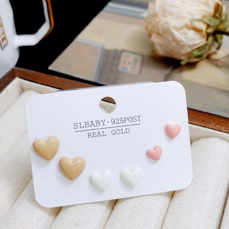 1 Set Sweet Heart Shape Plating Copper Ear Studs