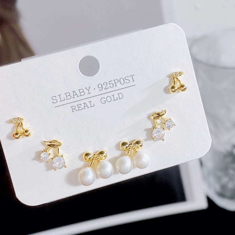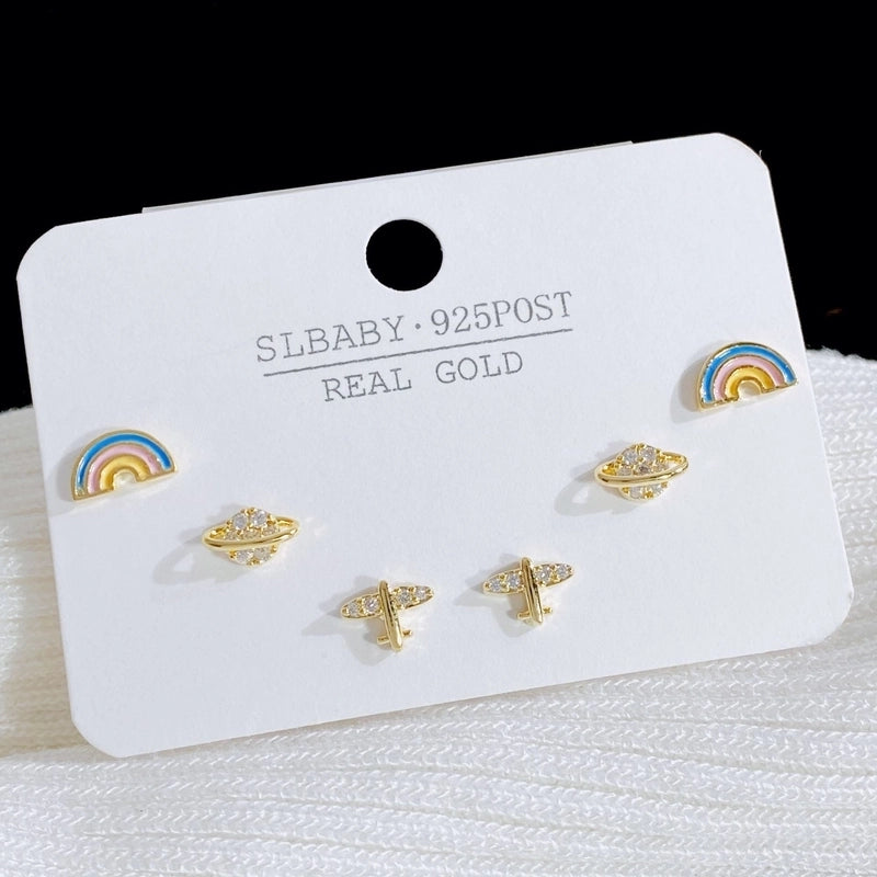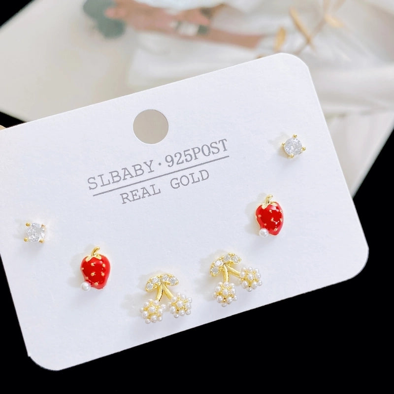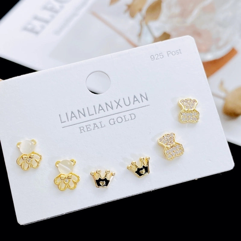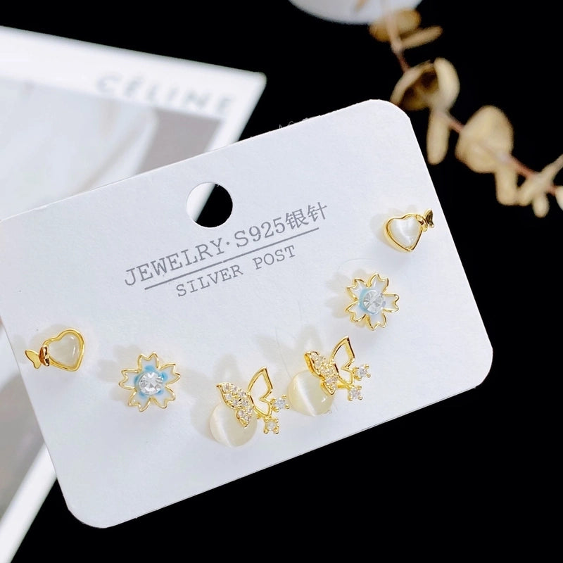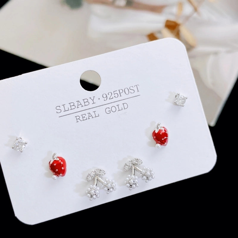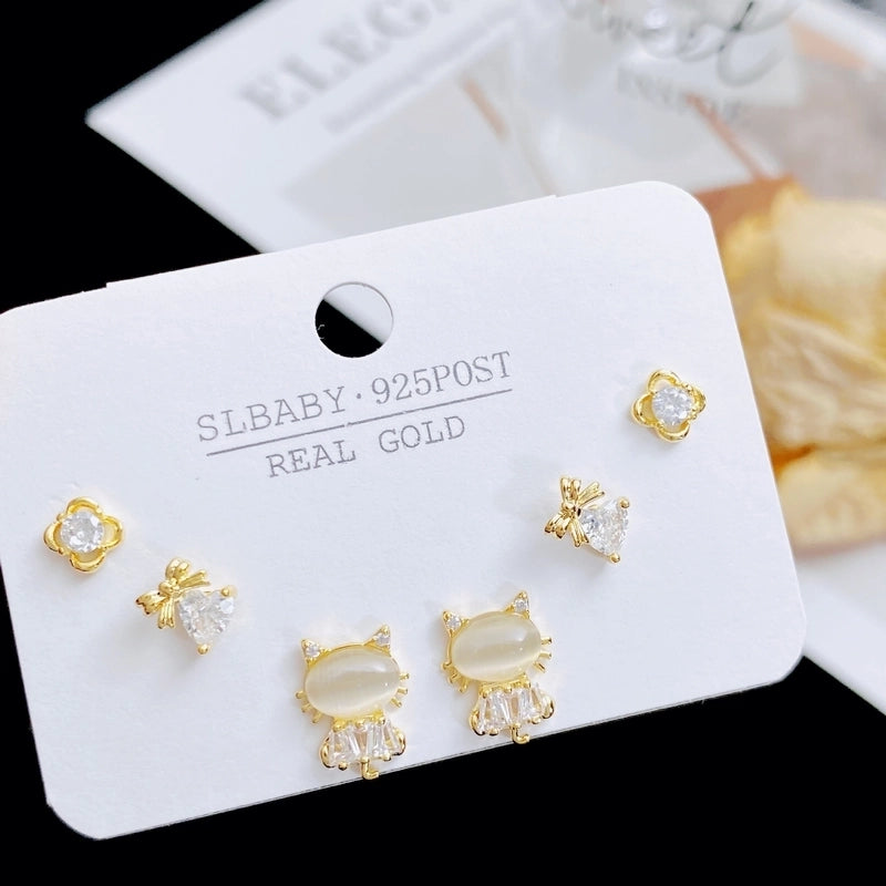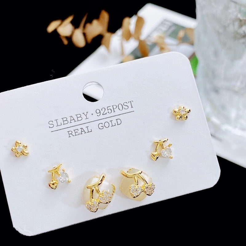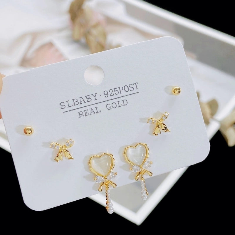 1 Set Sweet Heart Shape Plating Copper Ear Studs
